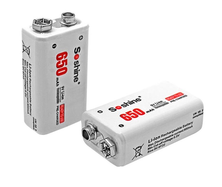 Аккумулятор Li-ion Soshine 9 V (Крона) - 7,4 V- 650 mAh перезаряжаемый