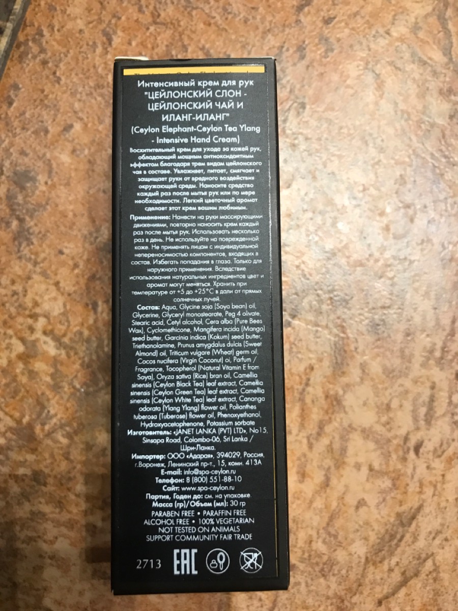 Spa Ceylon Интенсивный крем для рук Цейлонский Слон "ЦЕЙЛОНСКИЙ ЧАЙ И ИЛАНГ-ИЛАНГ", 30 гр