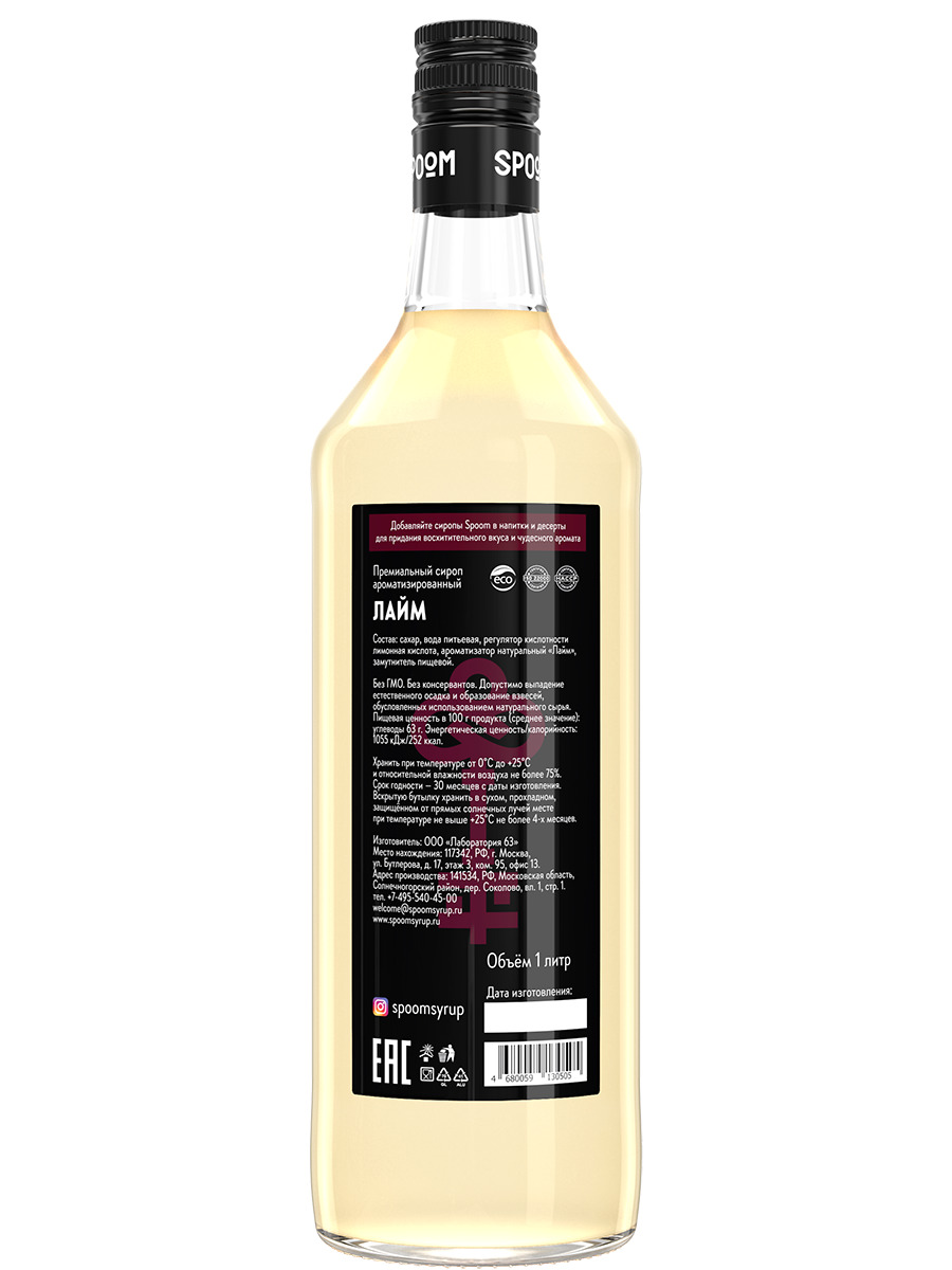 Сироп Spoom "Лайм", 1 л (для кофе и коктейлей)