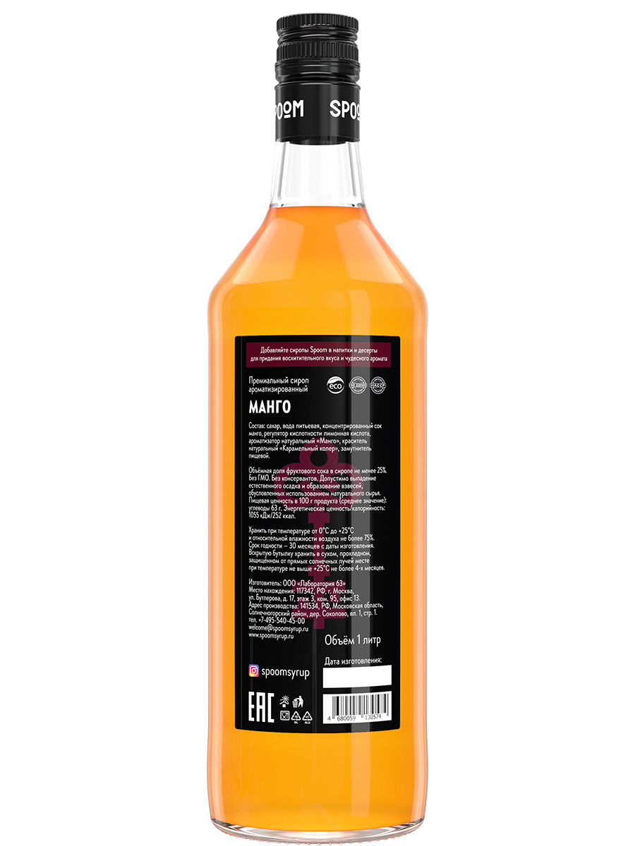 Сироп Spoom "Манго", 1 л (для кофе и коктейлей)