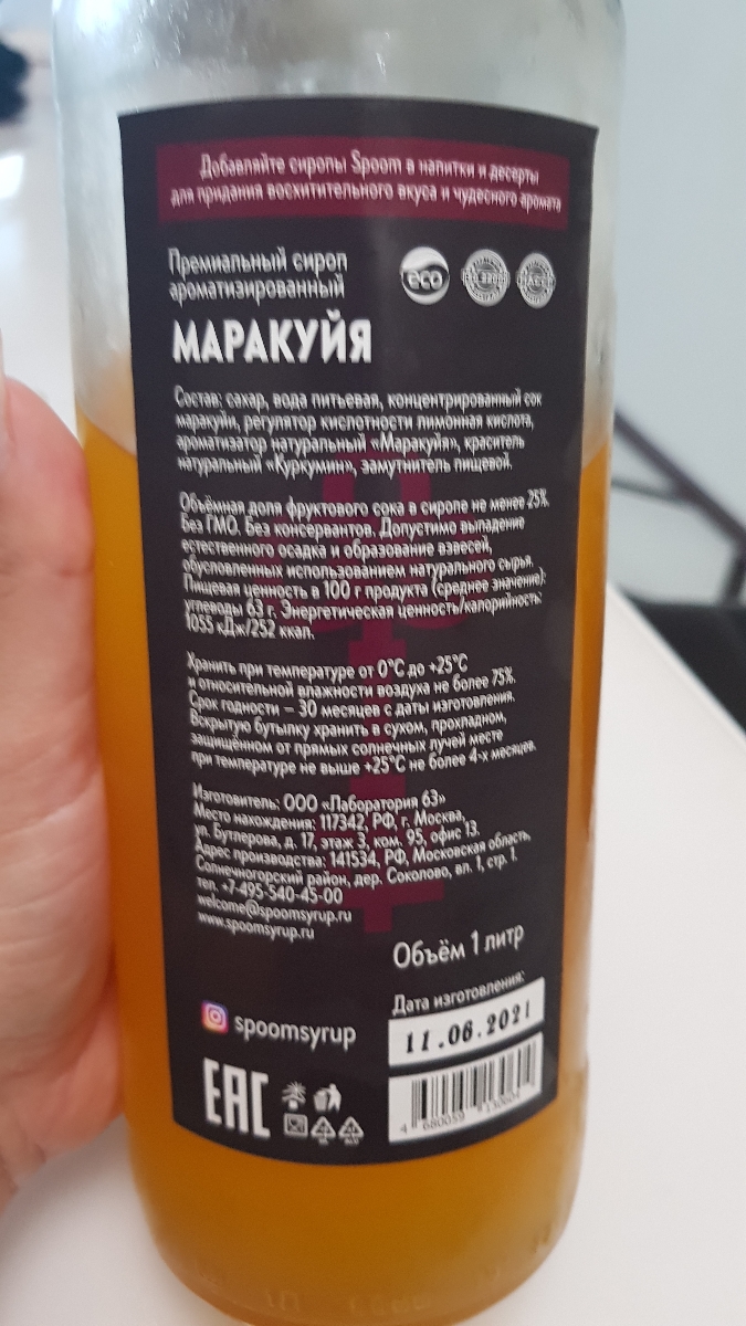 Сироп Spoom "Маракуйя", 1 л (для коктейлей, лимонадов и десертов)