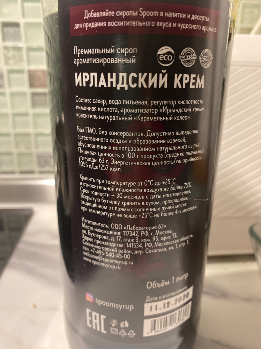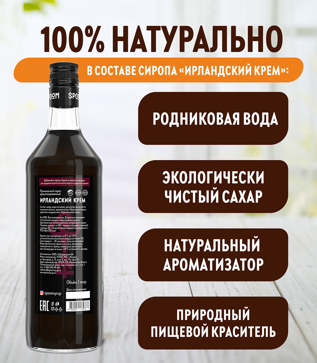 Сироп Spoom "Ирландский крем", 1 л (для кофе, коктейлей и десертов)