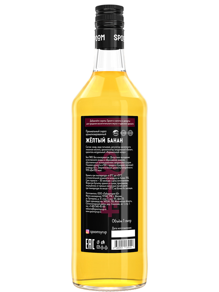 Сироп Spoom "Банан жёлтый", 1 л (для кофе и коктейлей)