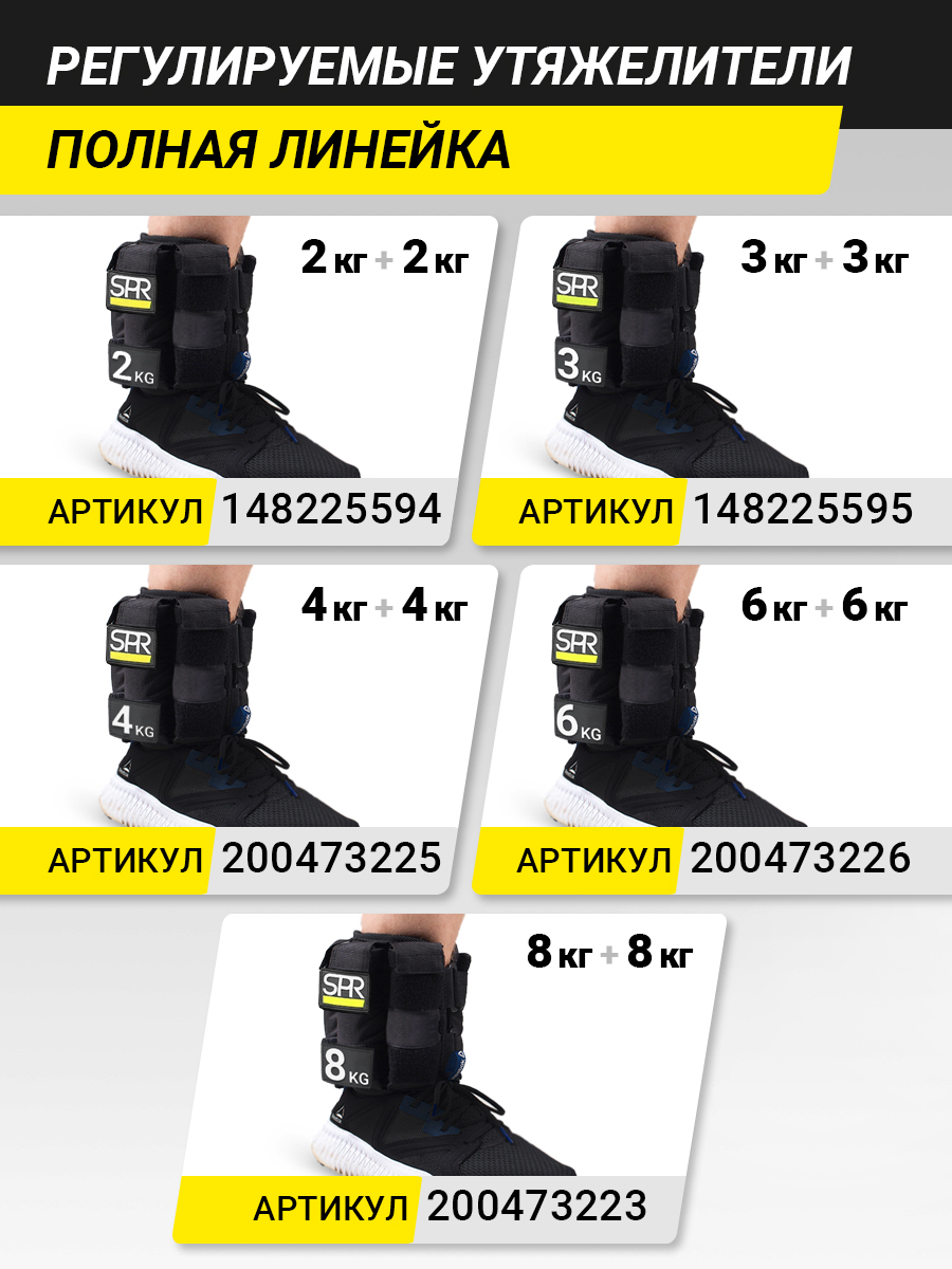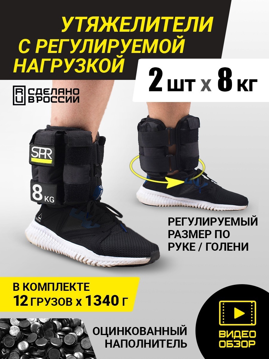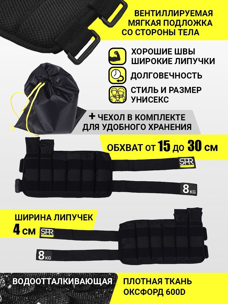 Утяжелители SPR регулируемые 2 шт по 8 кг, черный