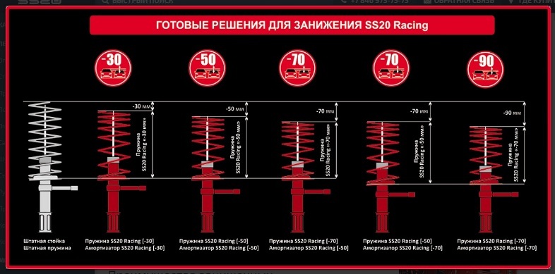 Амортизаторные стойки ВАЗ-2108-2110 передней подвески Racing Спорт (-70)