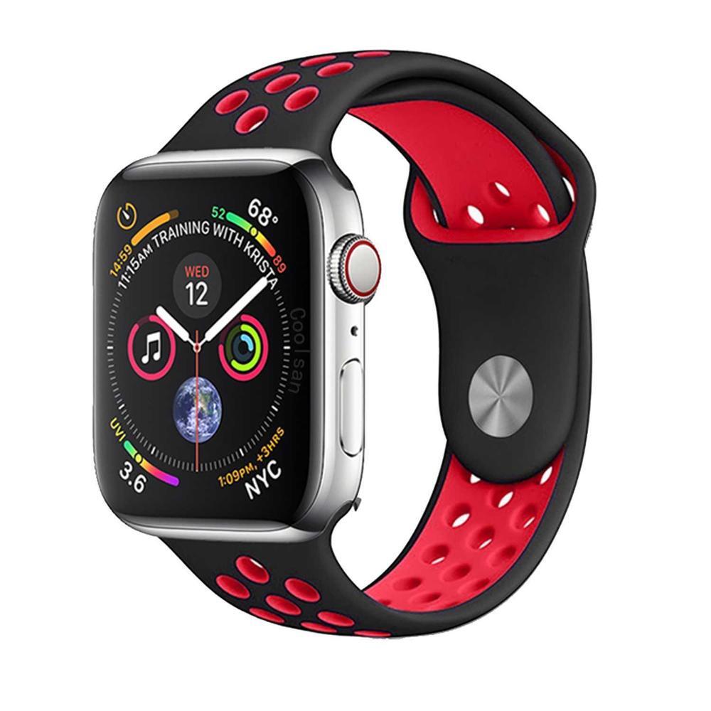 Силиконовый ремешок для часов Apple Watch 38/40 мм черный/красный (№2), размер S