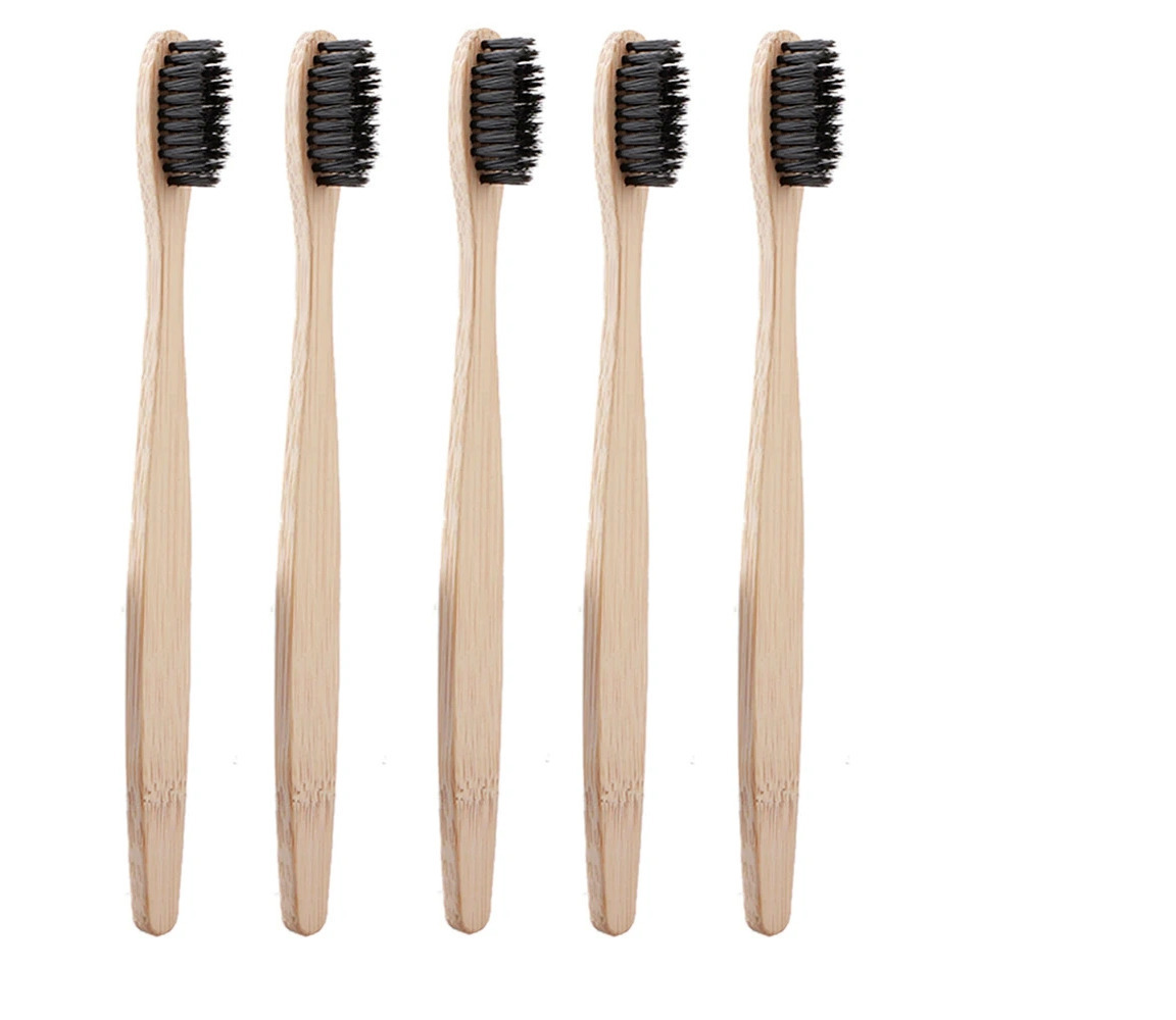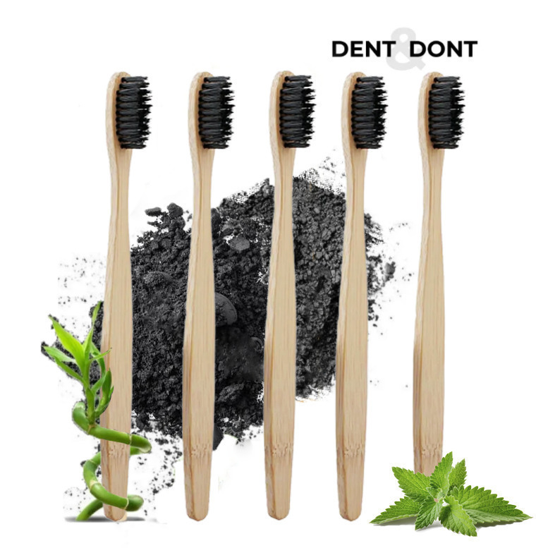 DENY & DONT, Набор бамбуковых зубных щеток, Деревянная зубная щетка средней жесткости с угольным напылением, 5 шт