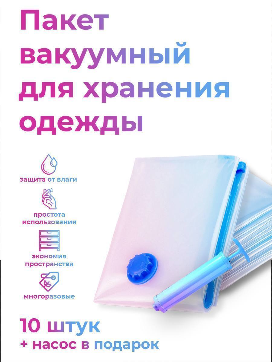 SSY, Вакуумные пакеты для хранения вещей и одежды, Набор вакуумных мешков с клапаном для хранения, Размер 10шт