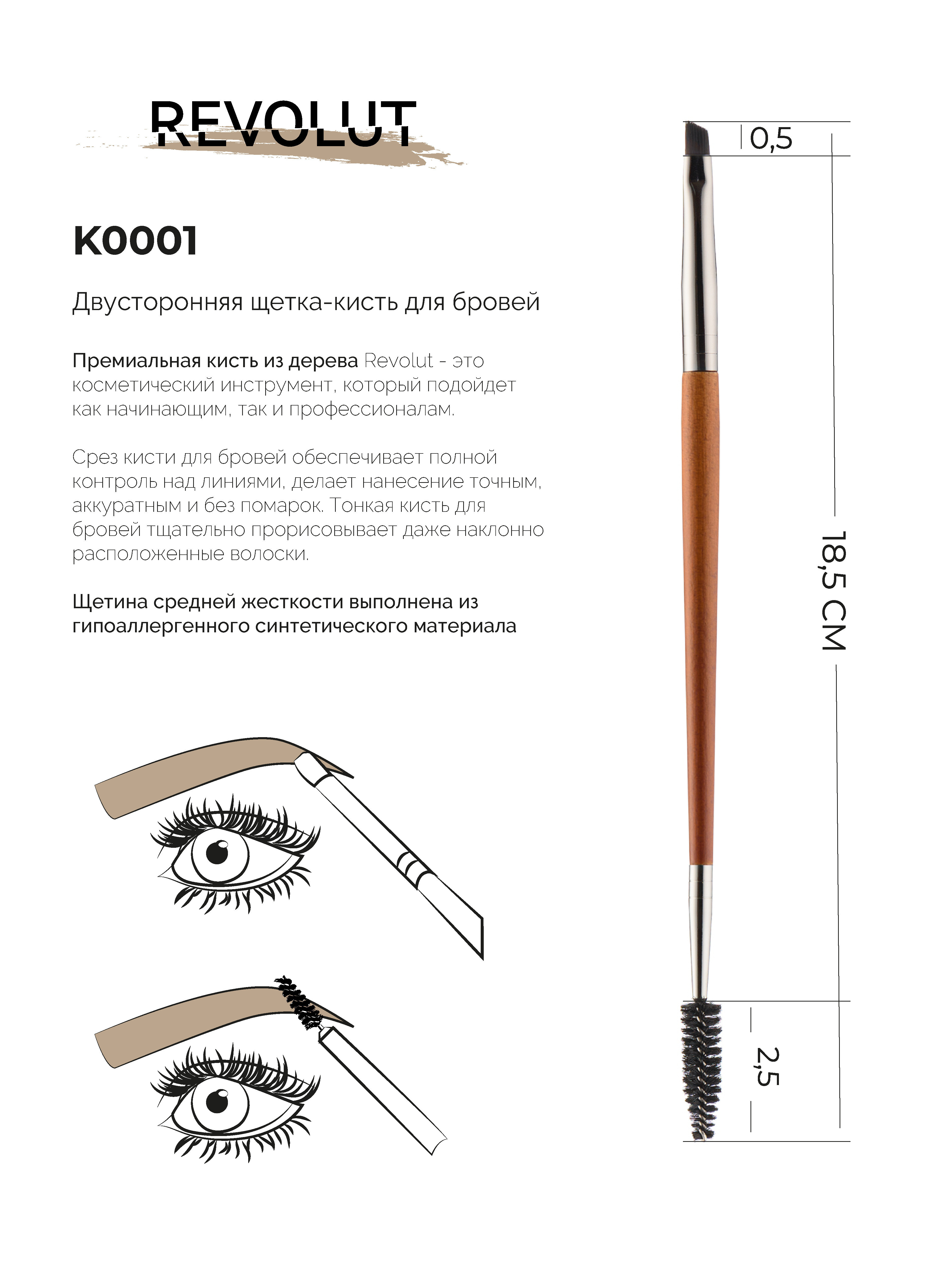 REVOLUT, Двусторонняя премиальная щетка-кисть для бровей, Деревянная косметическая кисть для окрашивания бровей