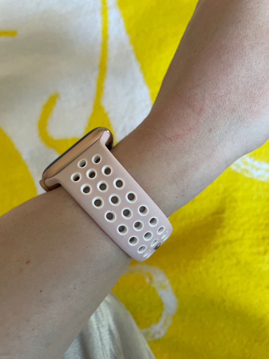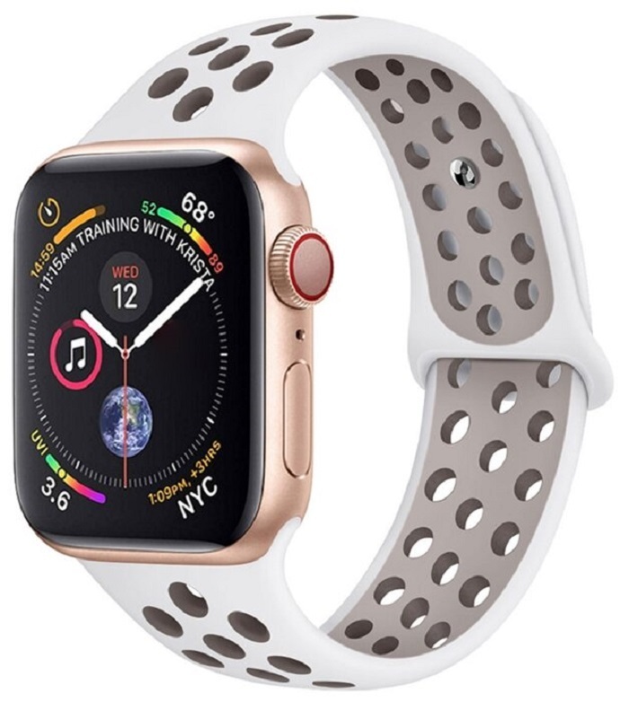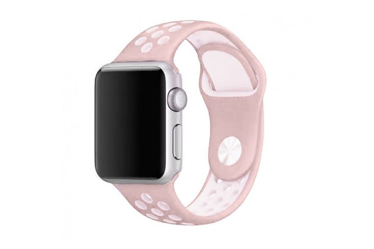 Силиконовый ремешок для часов Apple Watch 42/44 мм розовый/белый (№13), размер S