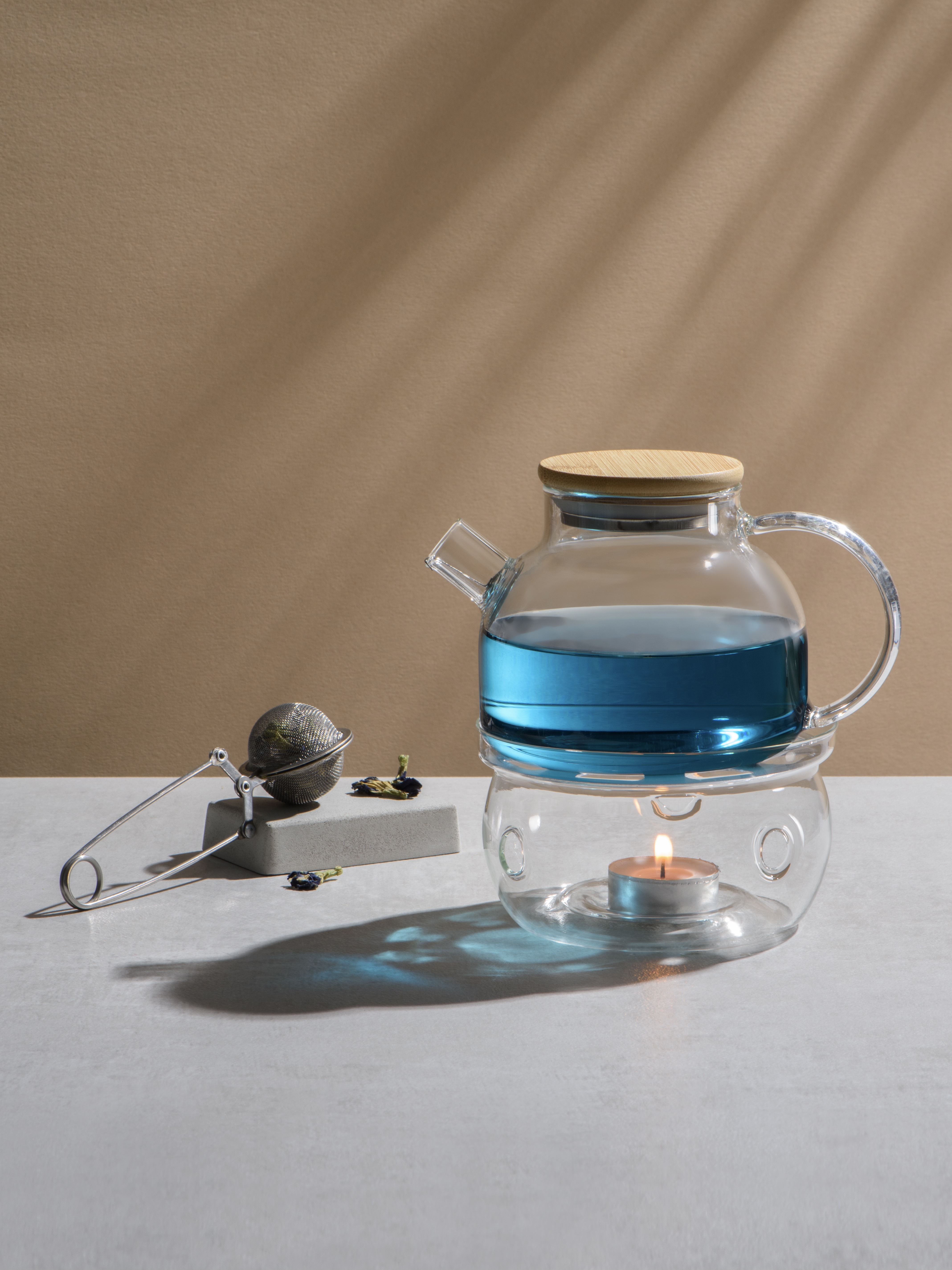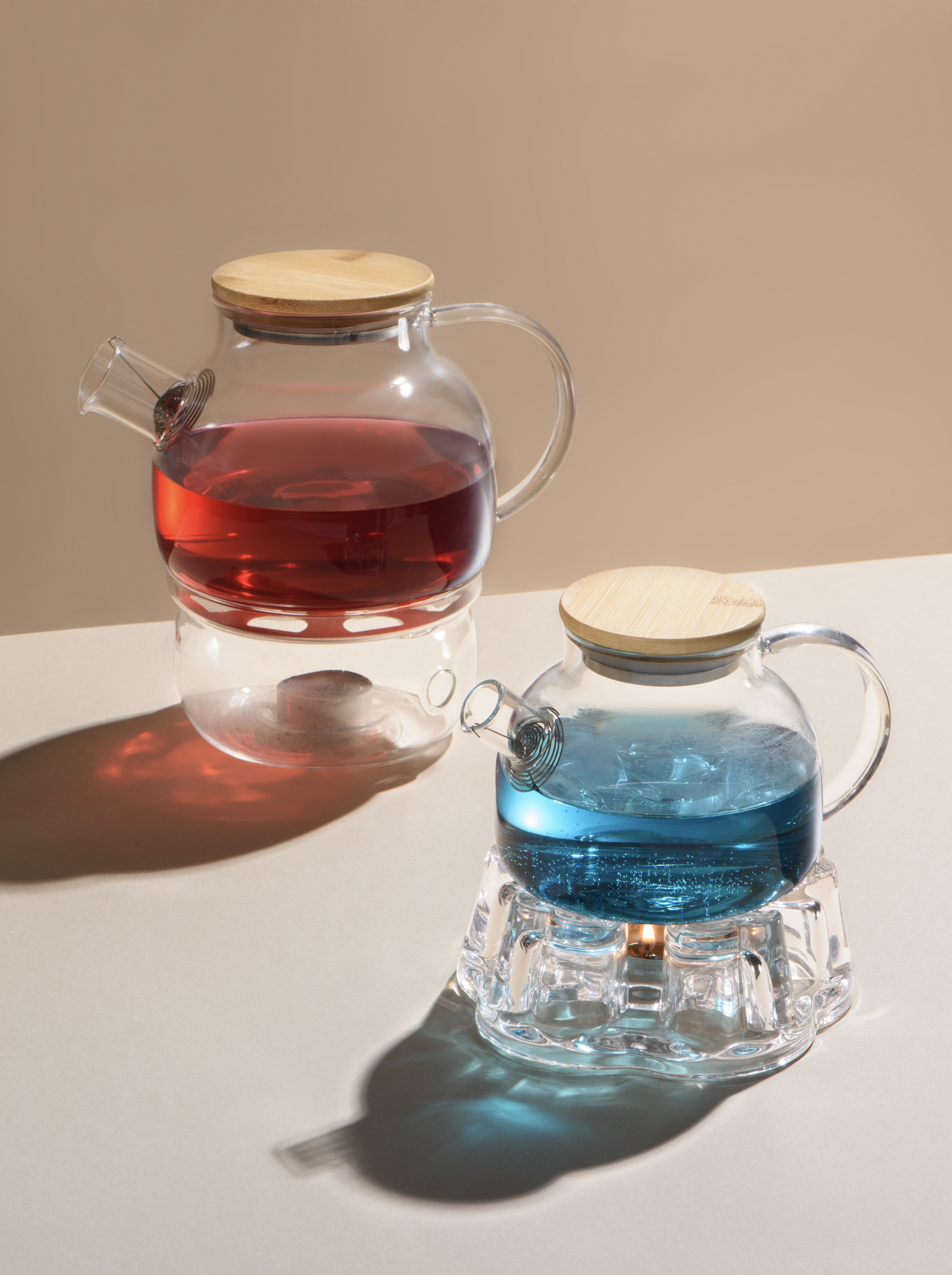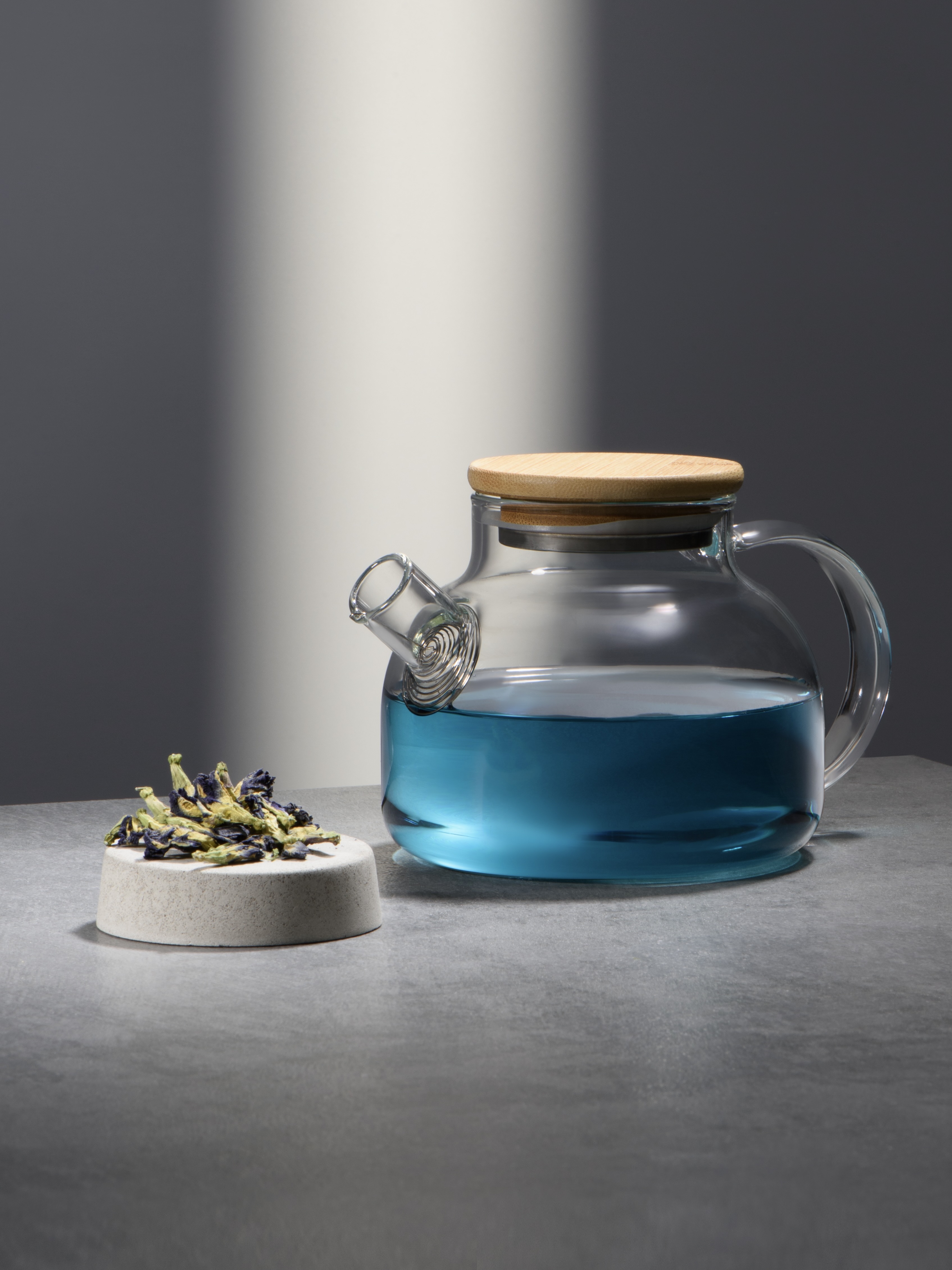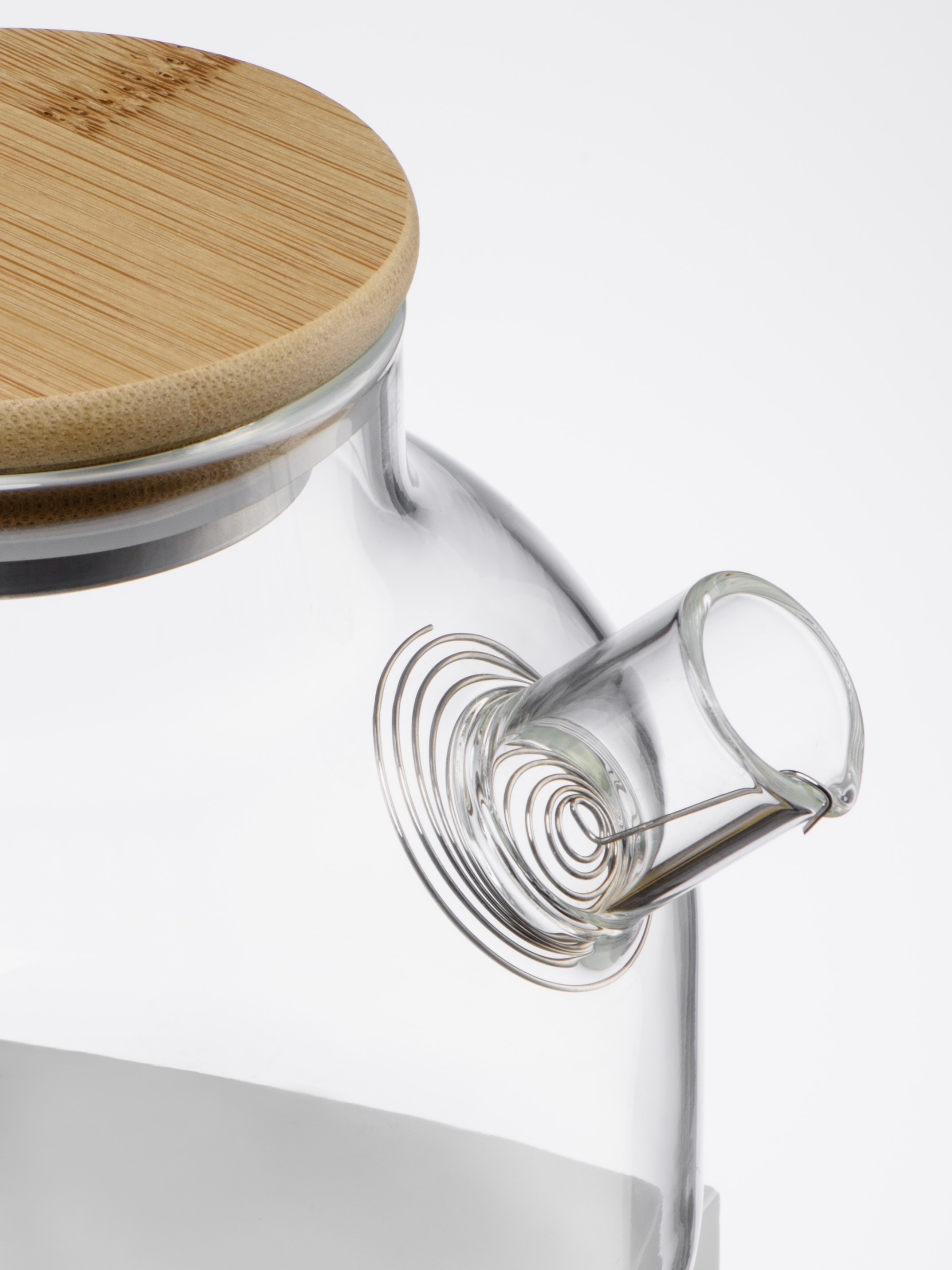 Limpid Side, Чайник заварочный стеклянный, Чайник "Бочонок" с бамбуковой крышкой и фильтром, 600 мл