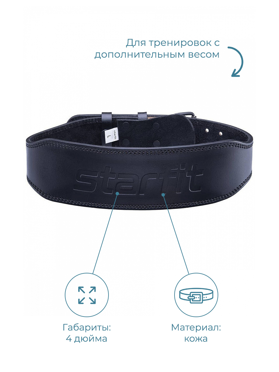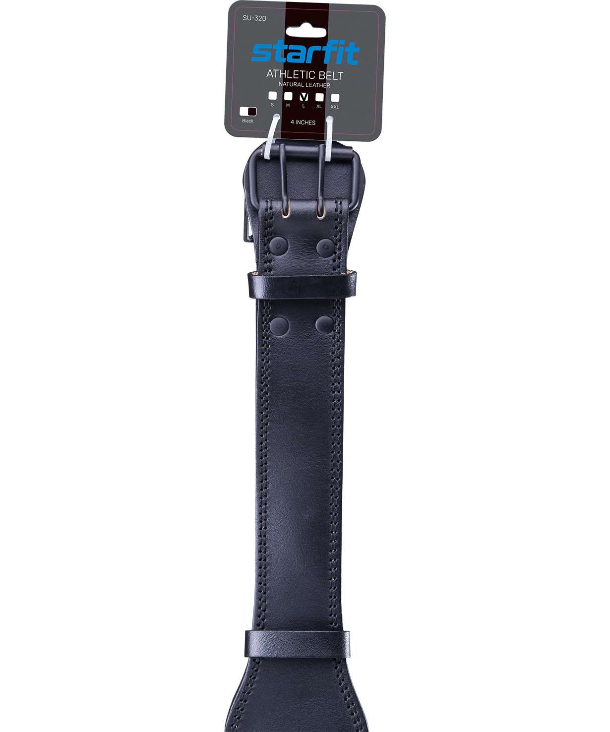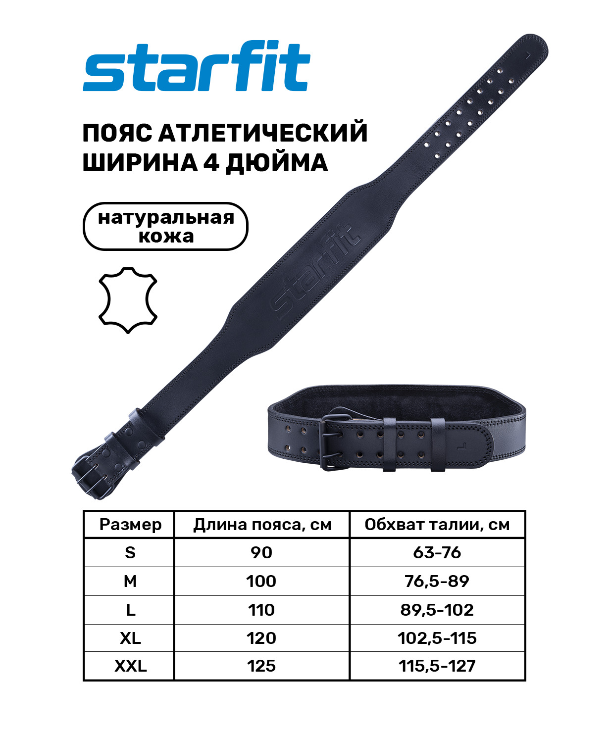 Пояс атлетический, STARFIT, SU-320, 4 дюйма, натуральная кожа, черный, S