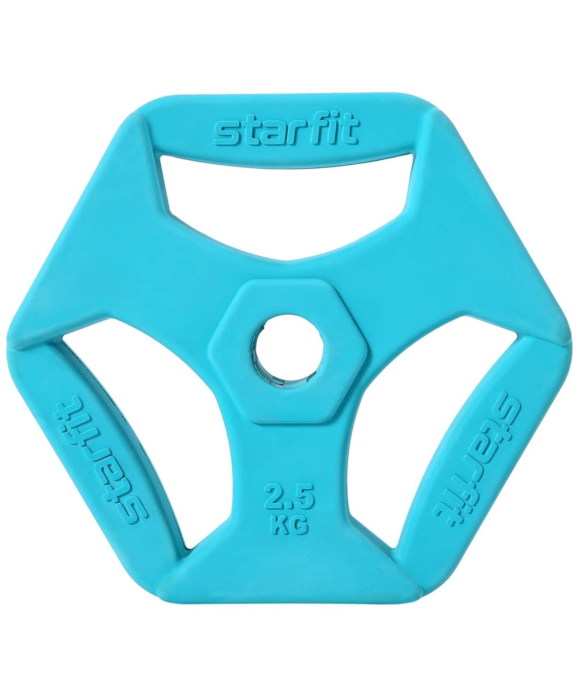 Диск обрезиненный с хватами STARFIT BB-205 2,5 кг, d-26 мм, без стальной втулки, бирюзовый