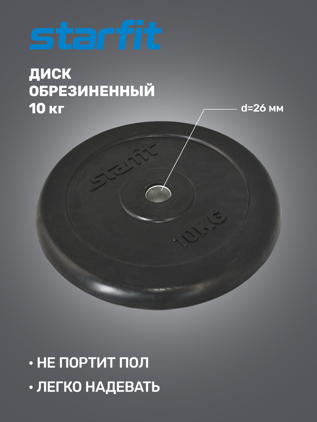 Диск обрезиненный STARFIT Core BB-202 10 кг, d26 мм, стальная втулка, черный