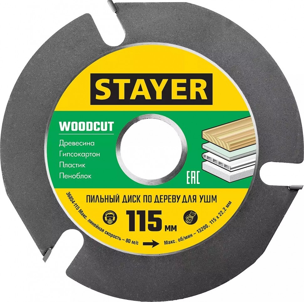 Диск пильный по дереву для УШМ,STAYER,115 мм, 3 резца,36854-115