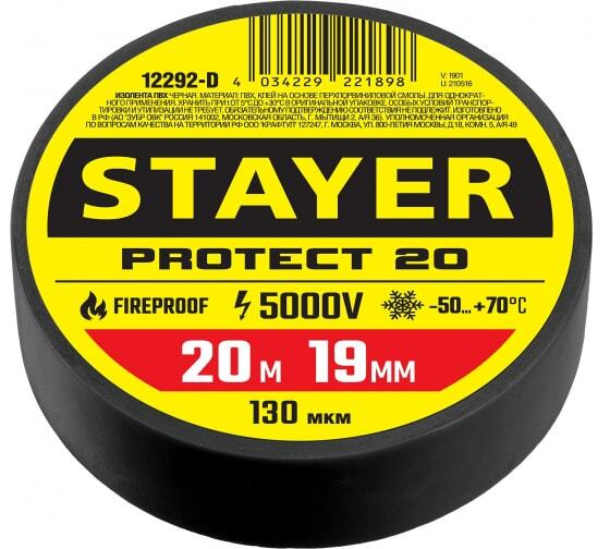 Изолента Stayer 12292-D 19 мм 20 м 130 мкм