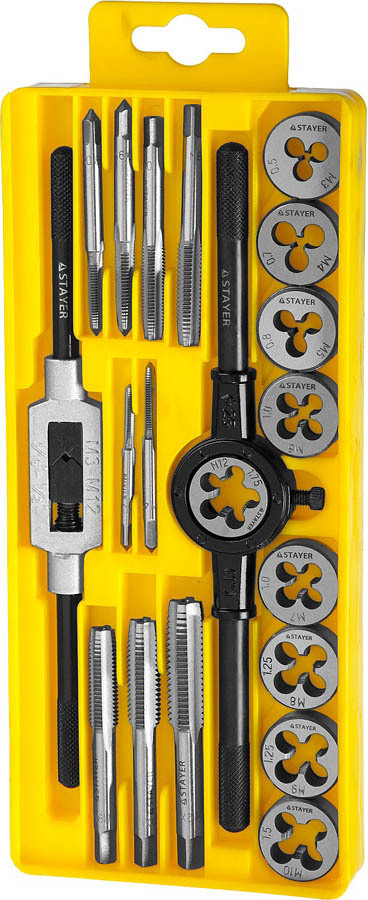Набор метчиков и плашек STAYER "MASTER", метчикодержатель 1шт, 20 штук