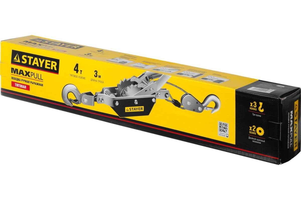 Лебедка STAYER "MAXPull" рычажная, тросовая, 4т/3м