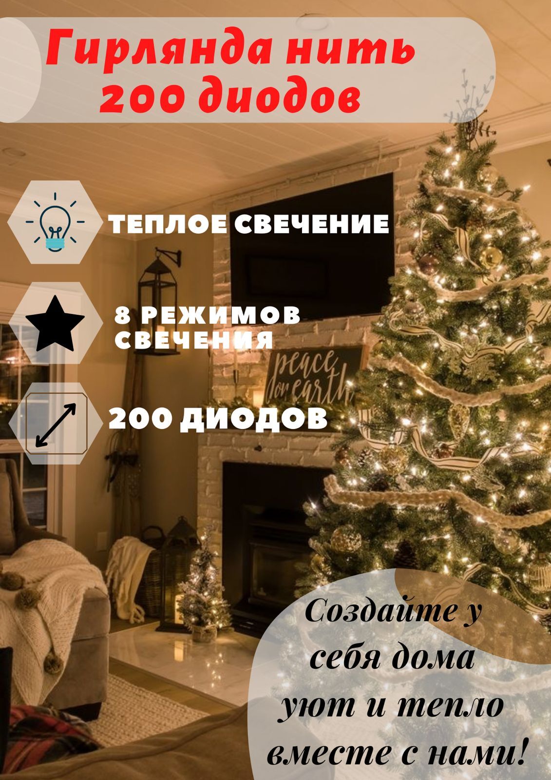 Электрогирлянда, Набор гирлянд интерьерная Нить SteelStar Светодиодная 100 ламп, 1 шт