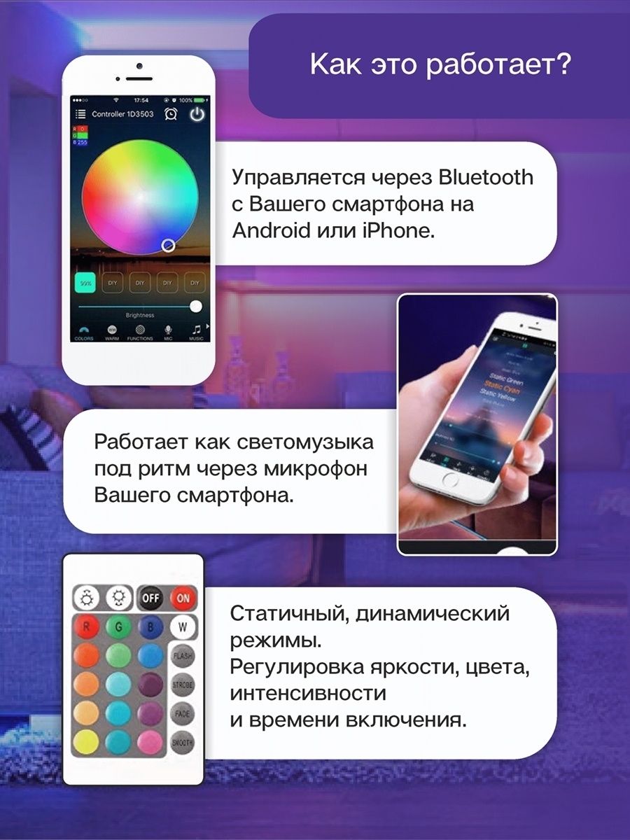 Светодиодная лента, Светодиодная лента для авто SteelStar 5м, 12В, IP65 Лента LED