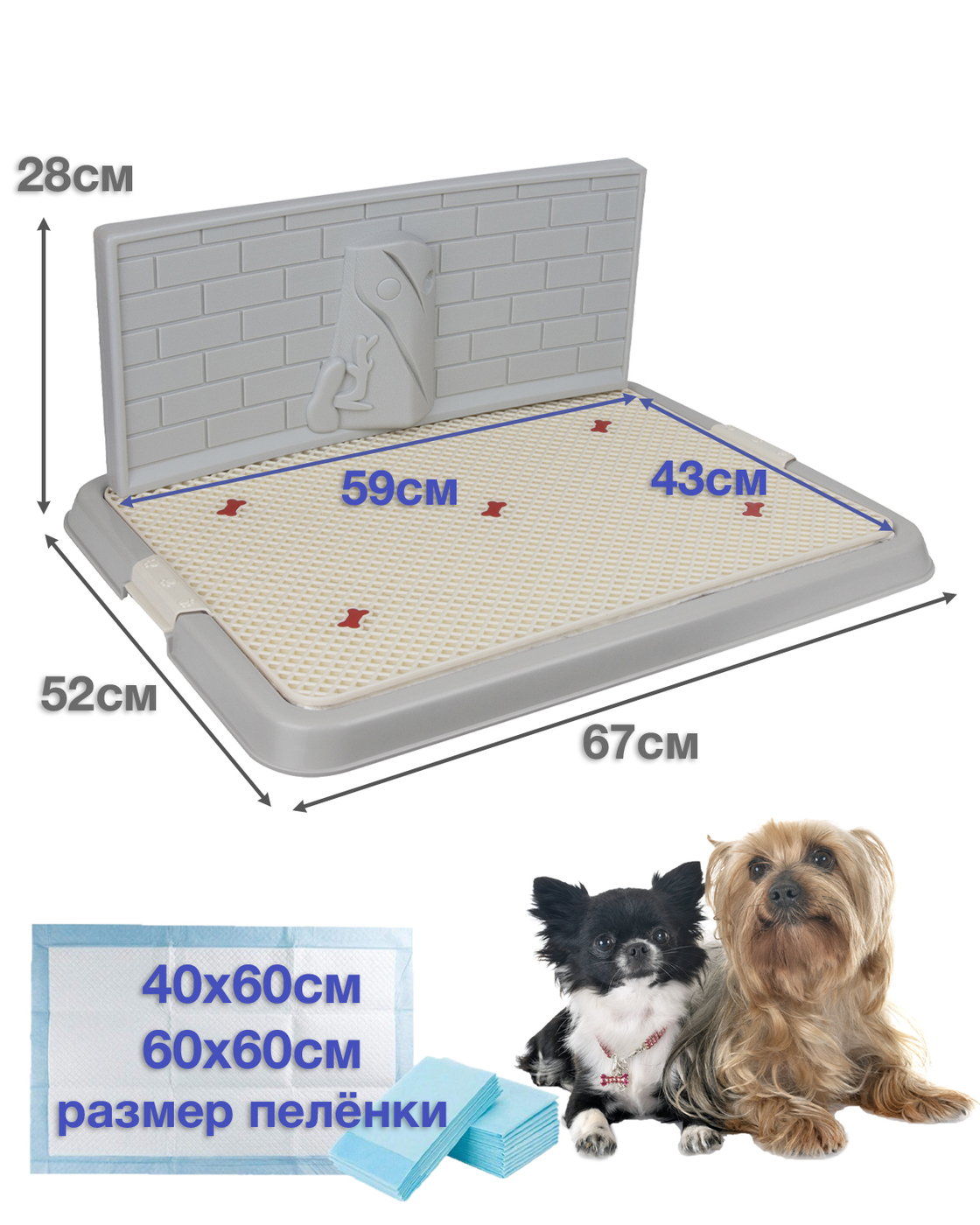 Туалет лоток для собак со стенкой STEFAN, большой (L), размер 67х52, серый, BP1311