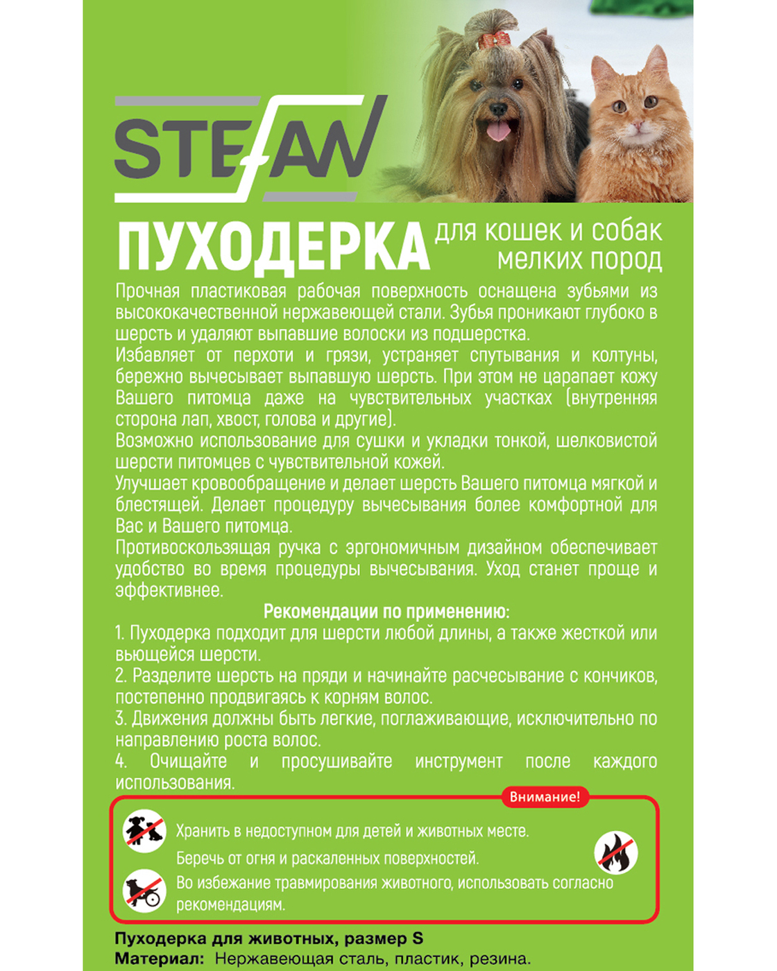 Пуходерка щетка для животных "STEFAN", S, GSN094