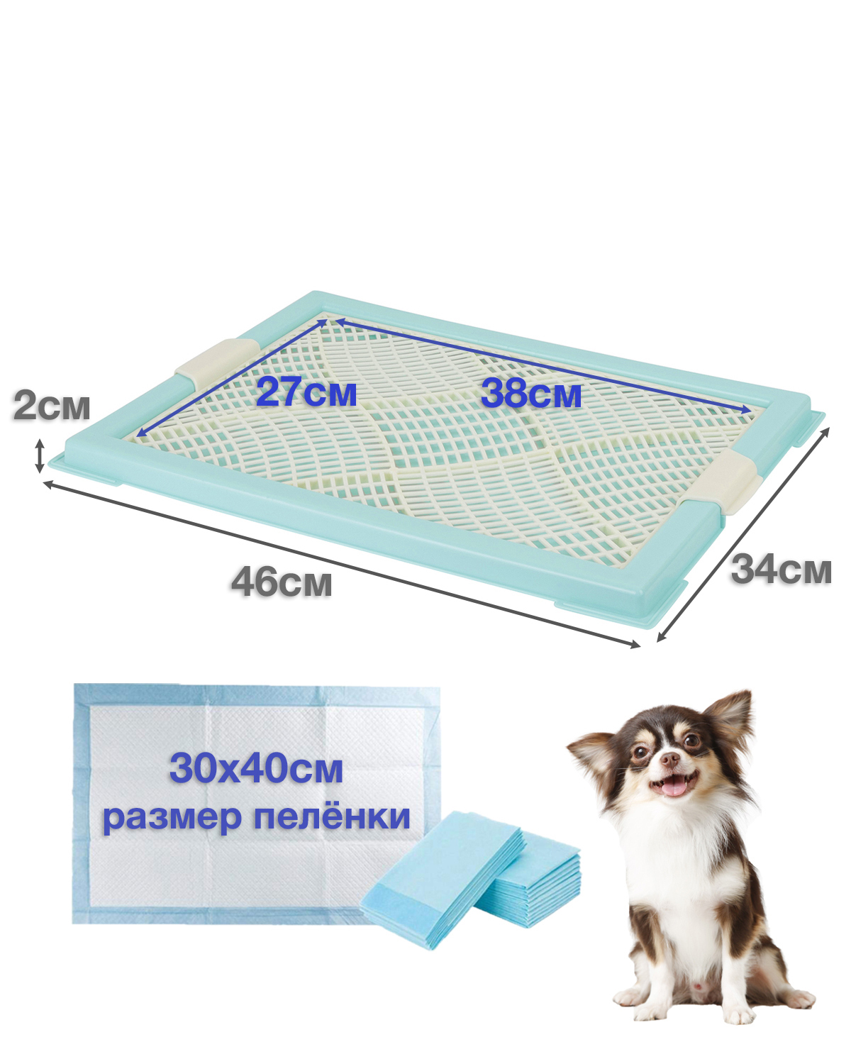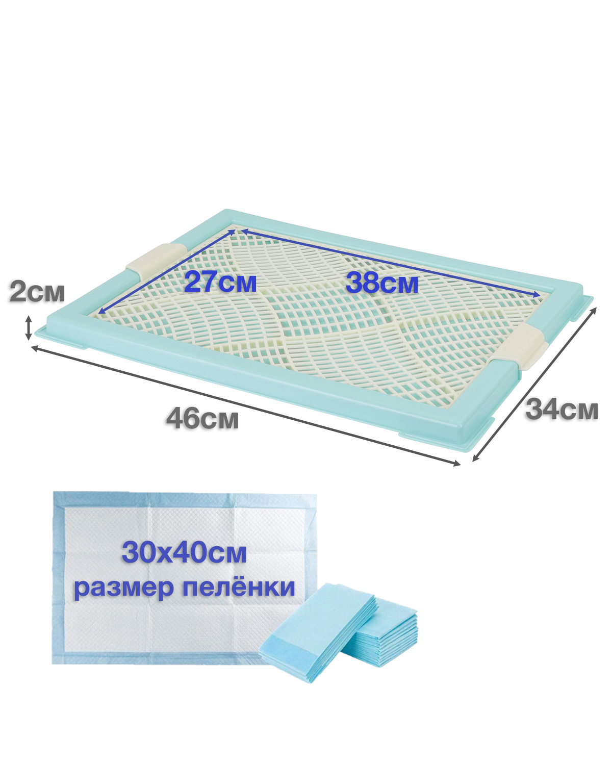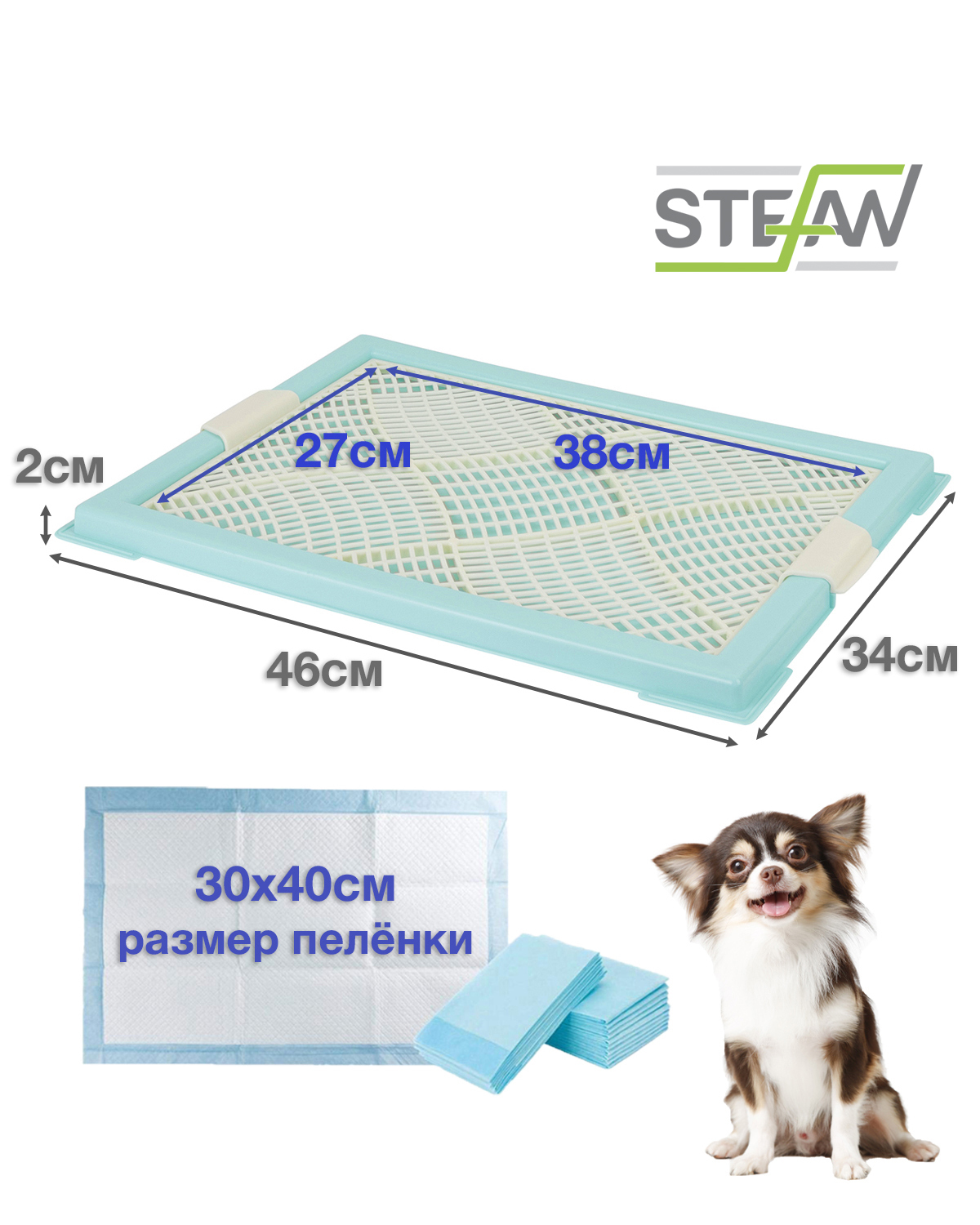 Туалет лоток для собак STEFAN с сеткой, мини (XS), размер 46х34см, цвет бирюзовый, BP1042