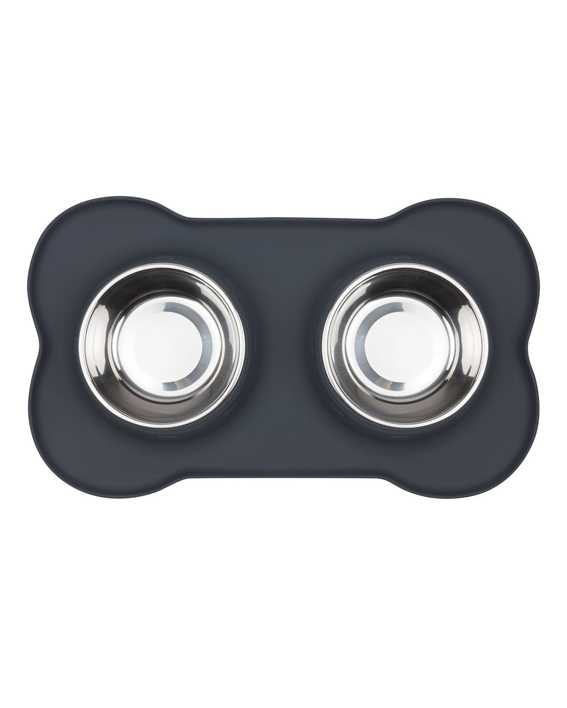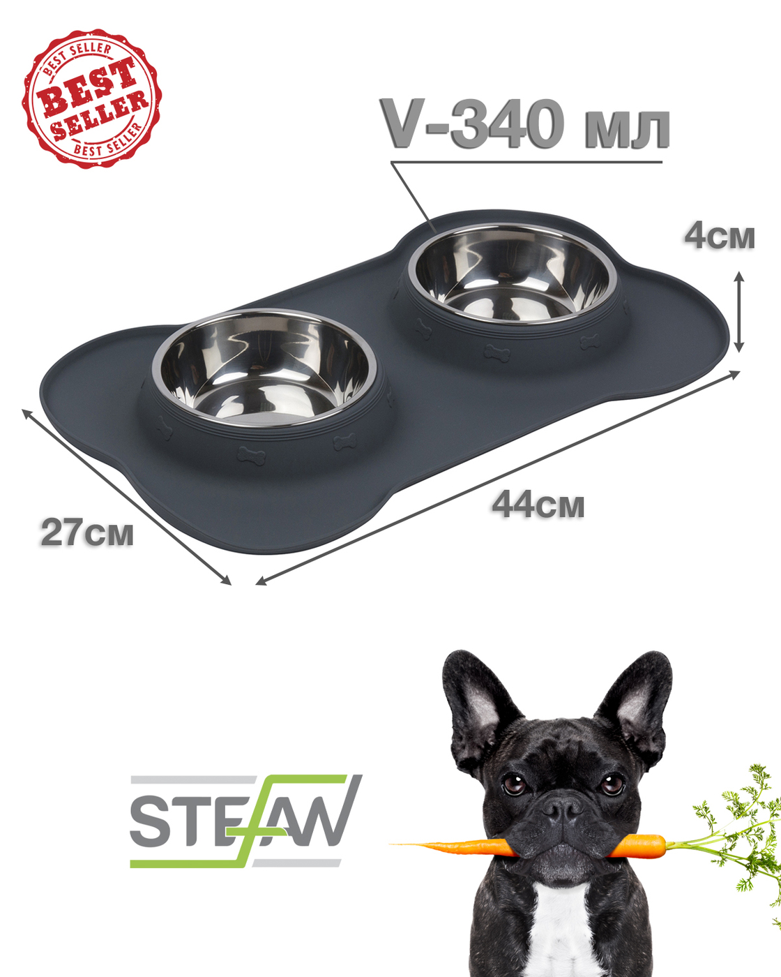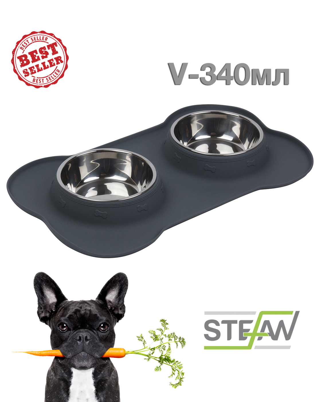 Миска для животных двойная с силиконовым основанием STEFAN, размер M, 2х340мл, серая, WF50201