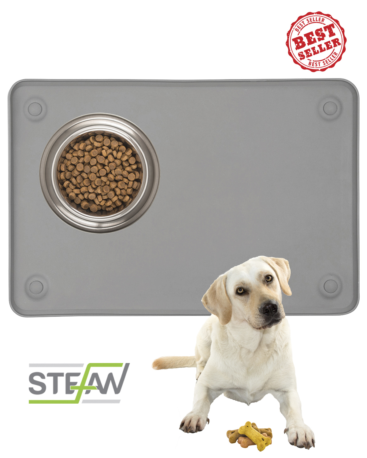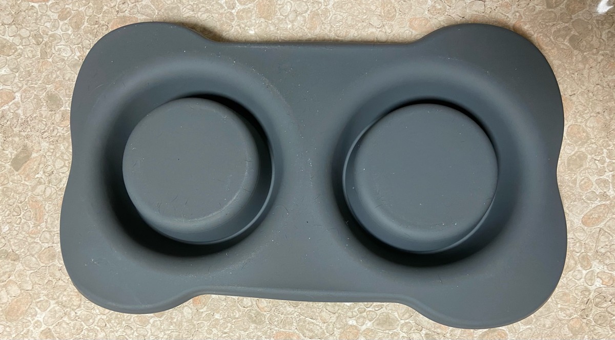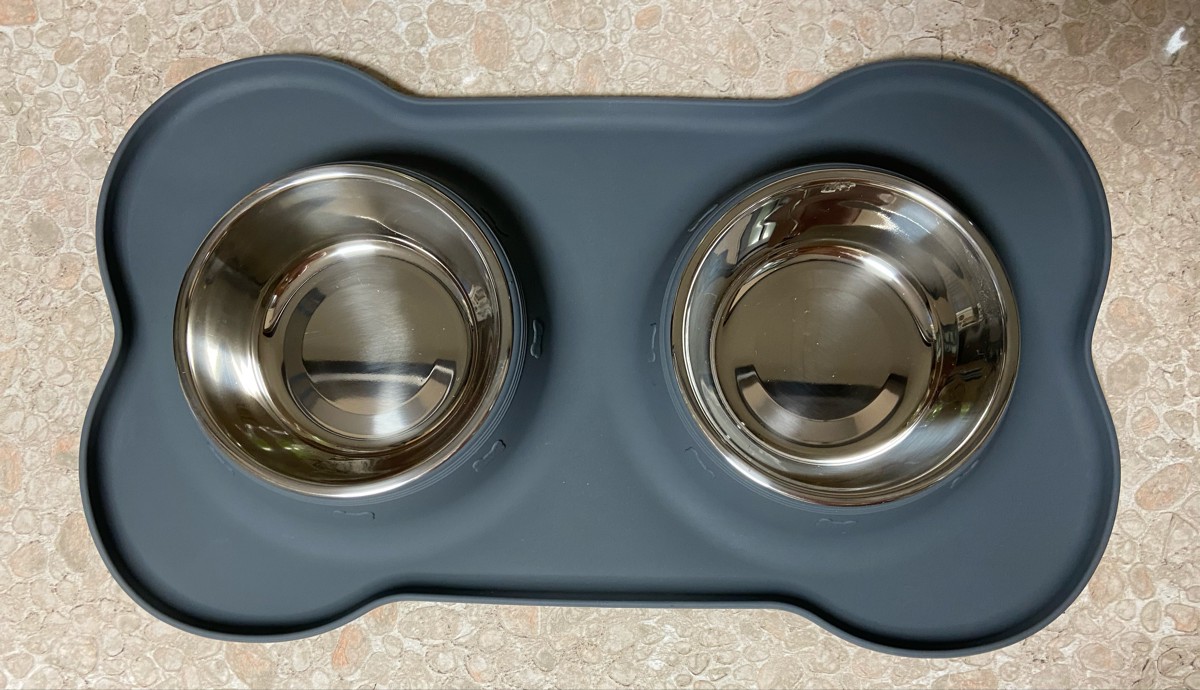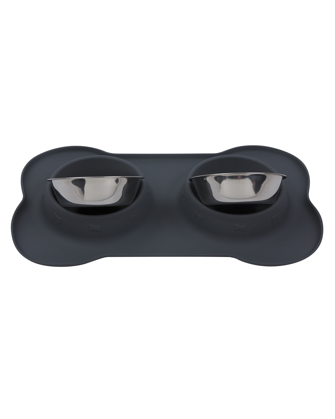 Миска для животных двойная с силиконовым основанием STEFAN, размер M, 2х340мл, серая, WF50201