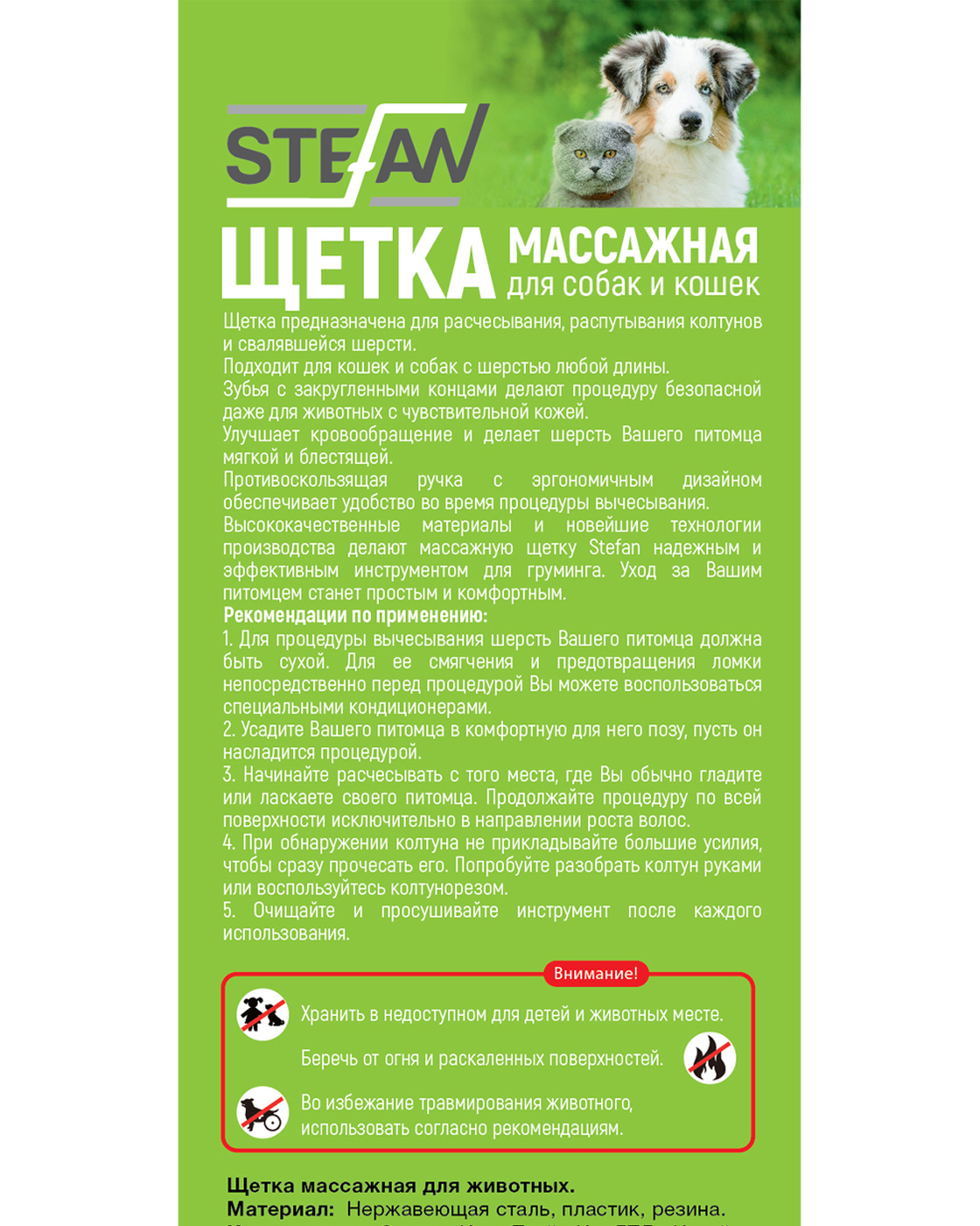 Расческа щетка массажная для животных "STEFAN", GB1010