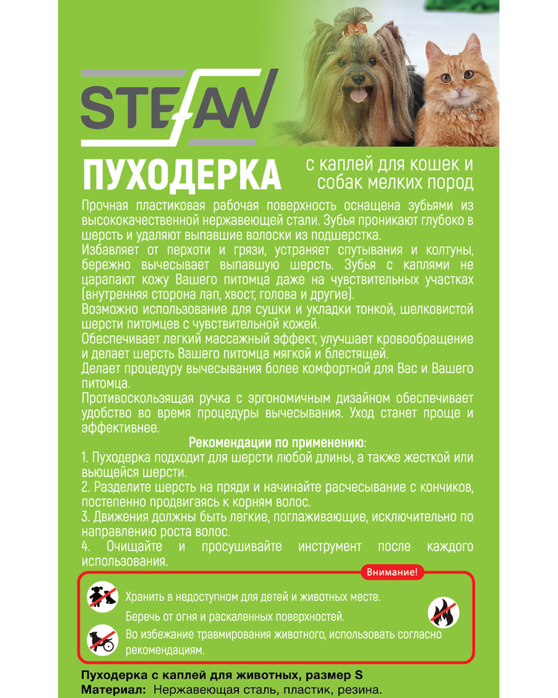 Пуходерка щетка с каплей для животных "STEFAN", S, GSB094