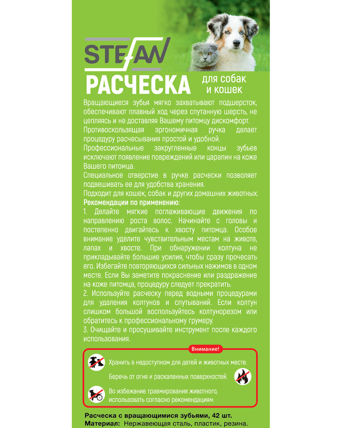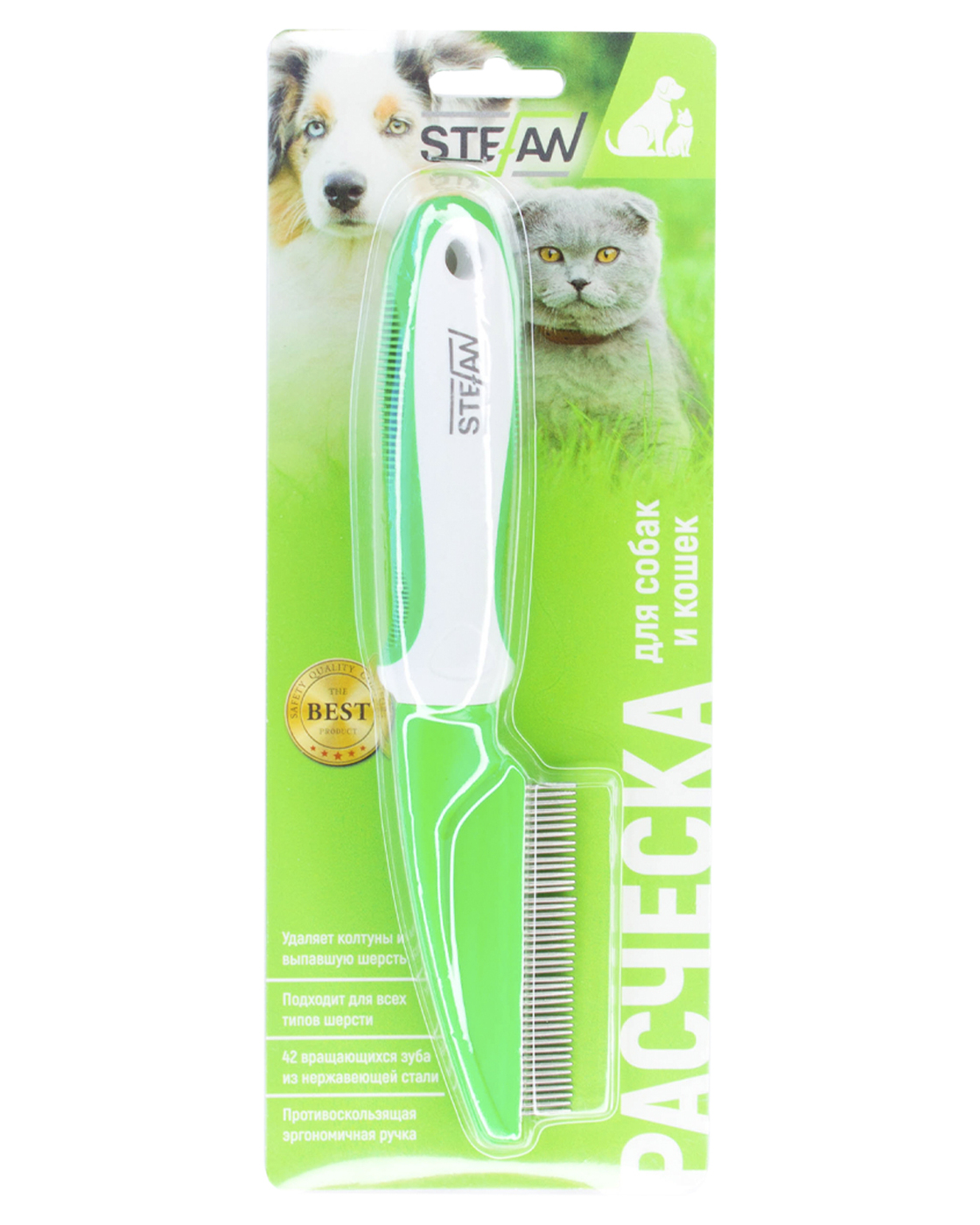 Расческа для животных с вращающимися зубьями "STEFAN", 42 зубца, GСR042