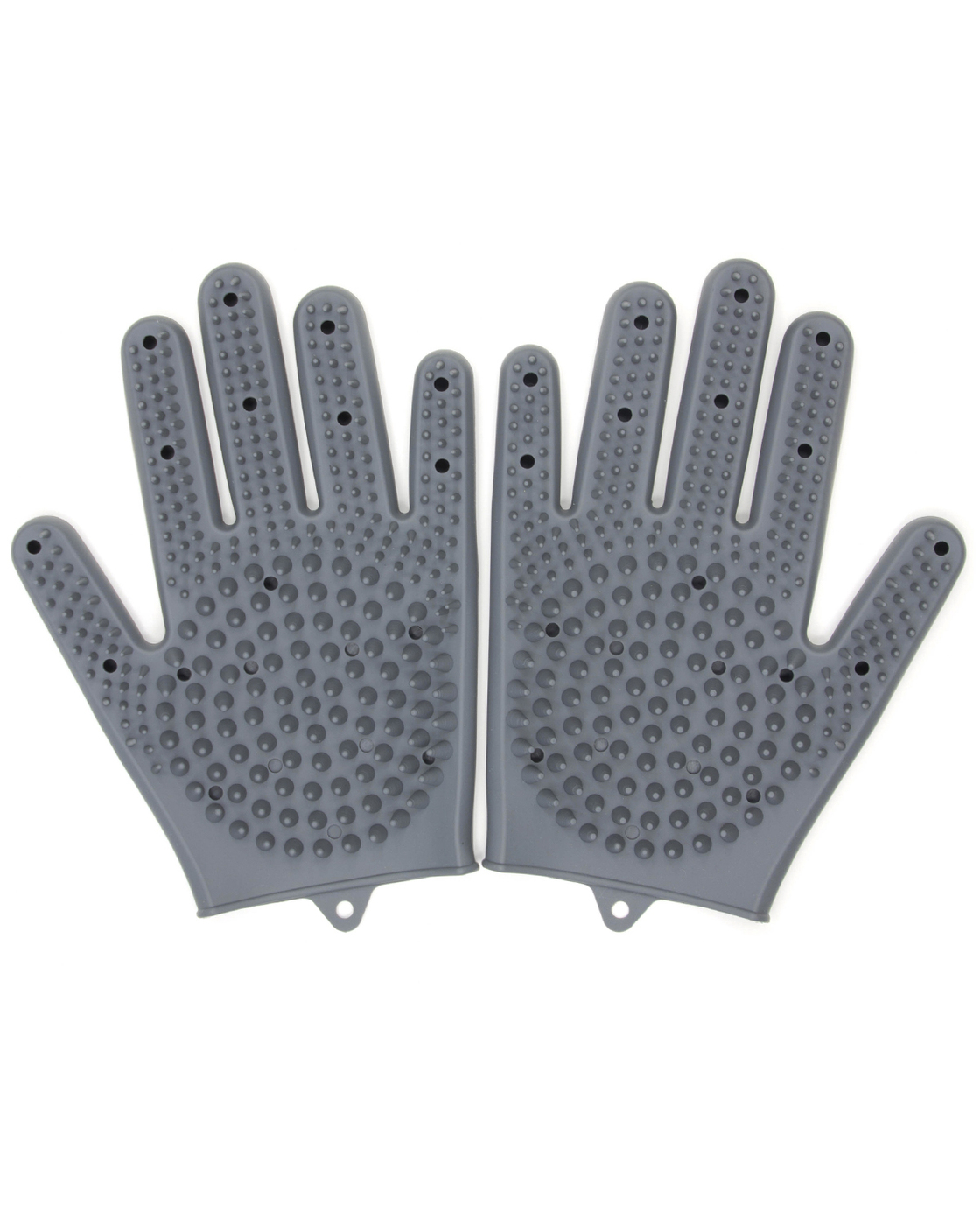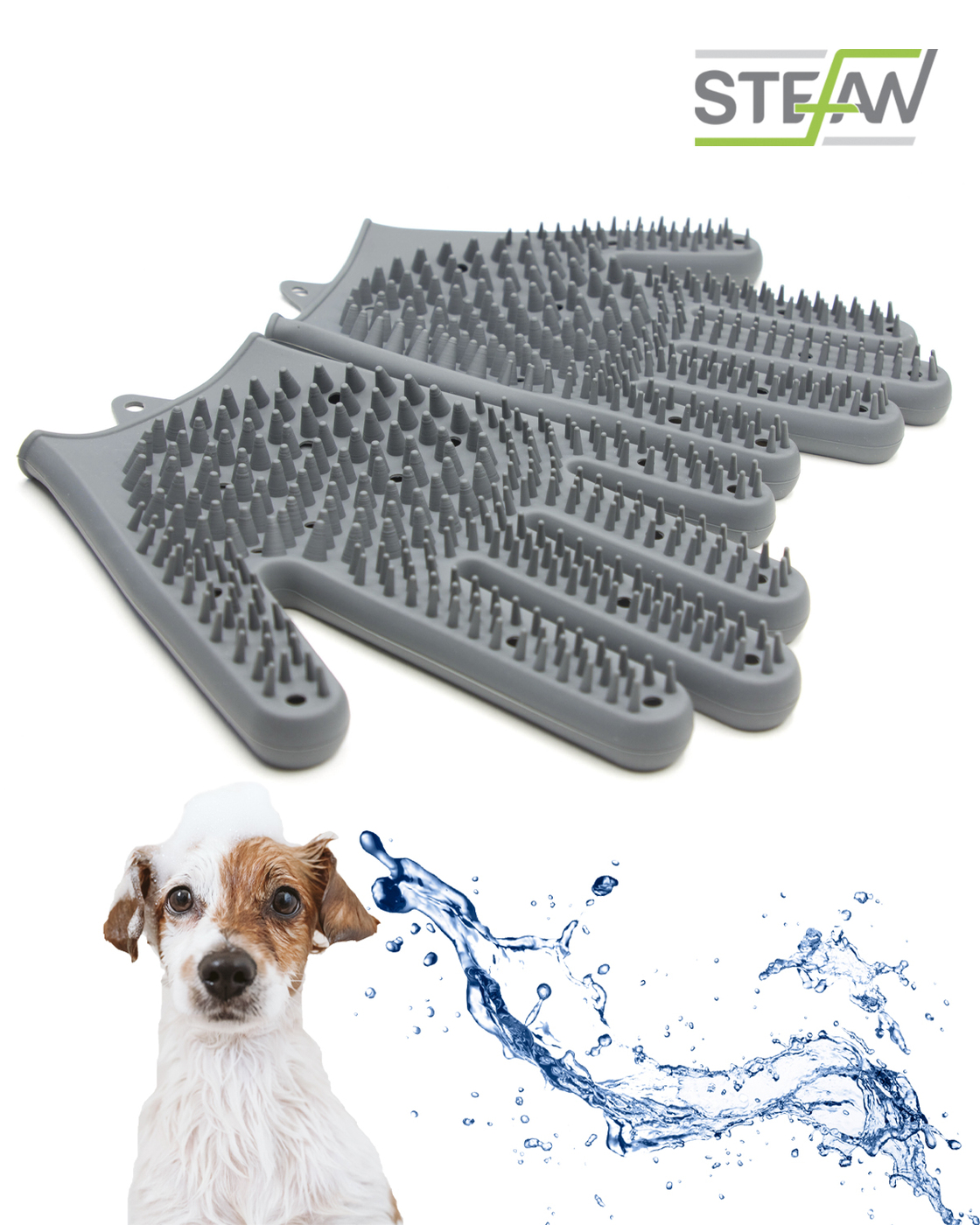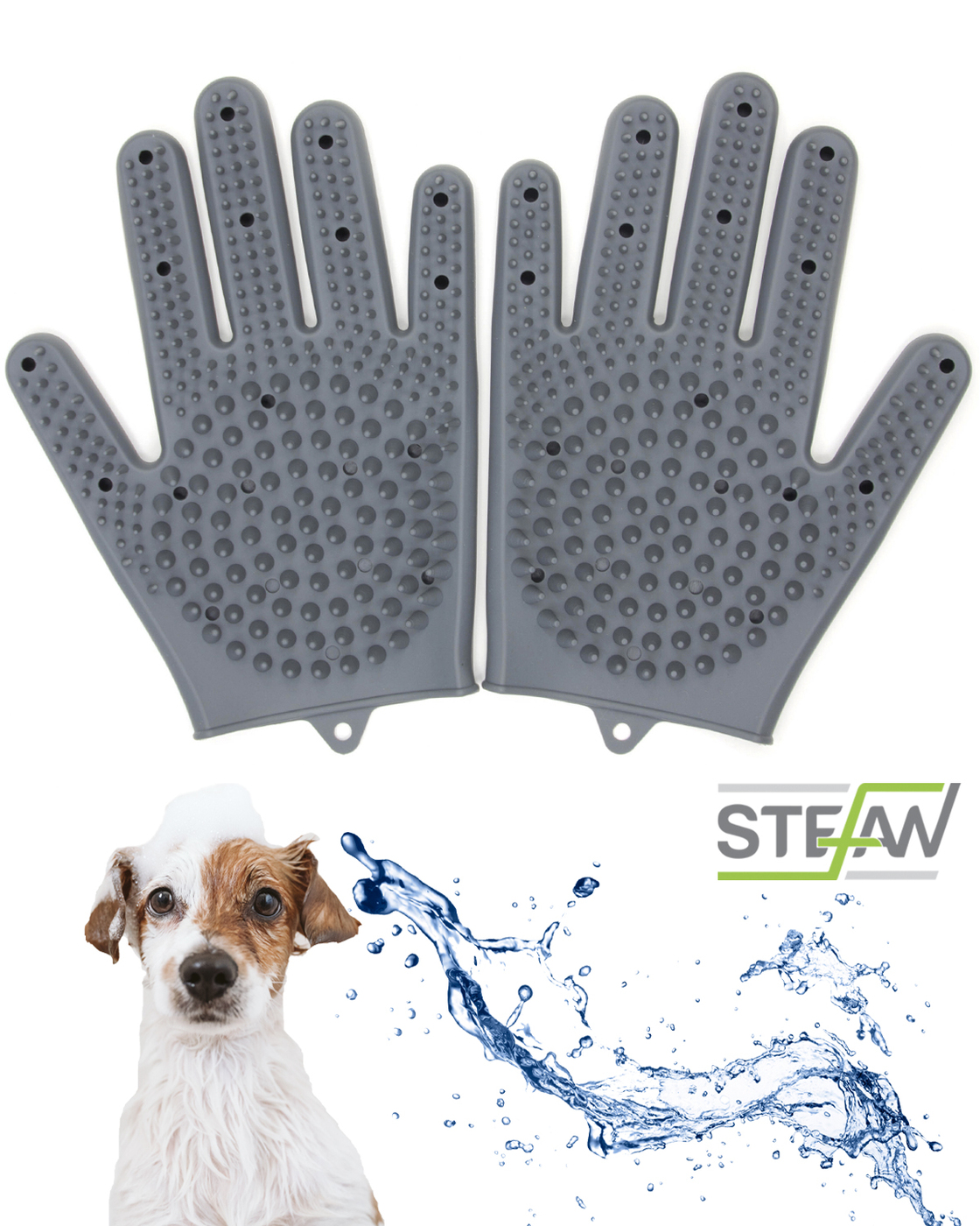 Перчатки силиконовые для мытья/массажа домашних животных STEFAN, серый, WF51201