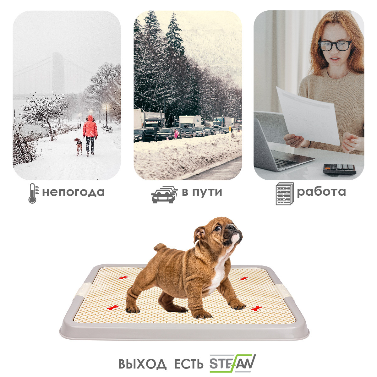 Туалет, лоток для собак "STEFAN" под одноразовую пеленку, большой (L), размер 63x49, серый, BP1031B