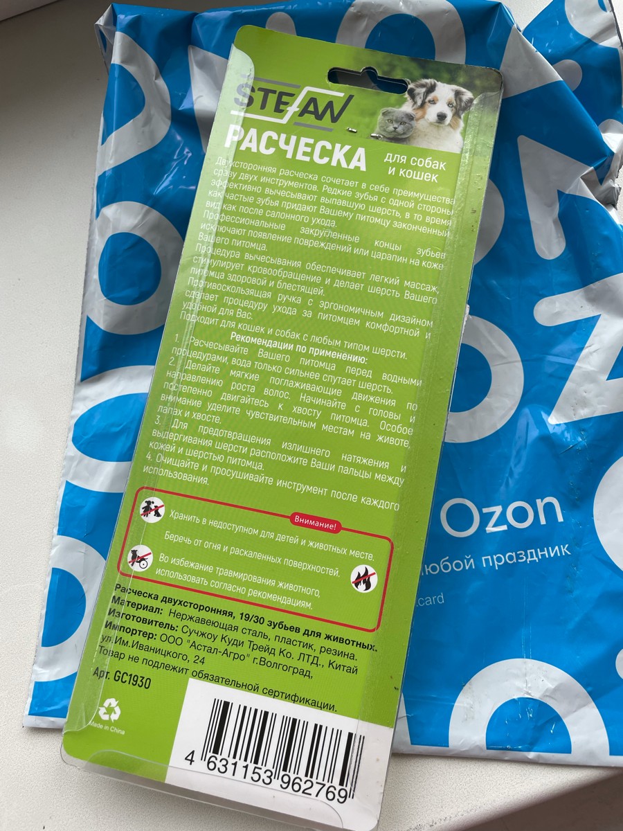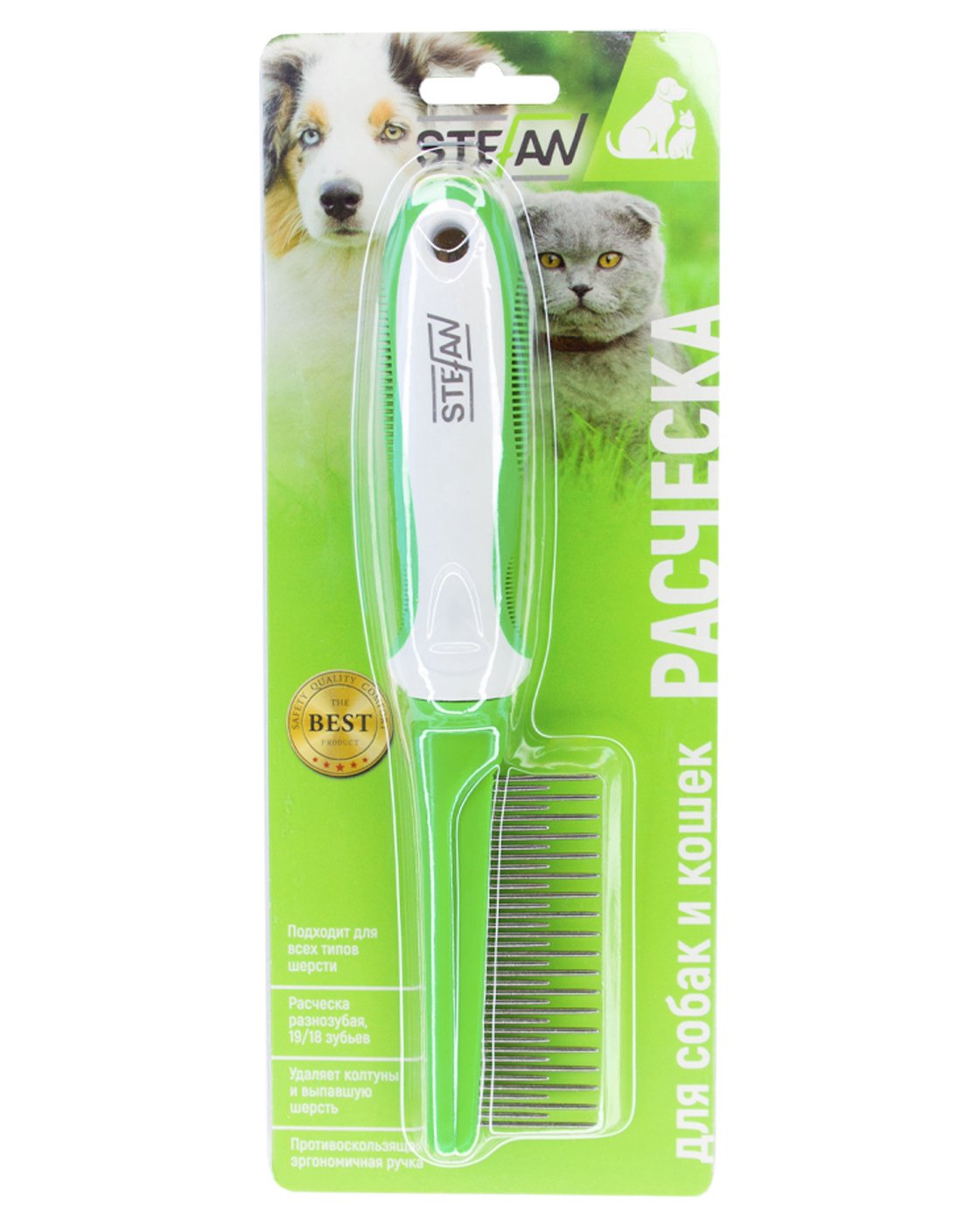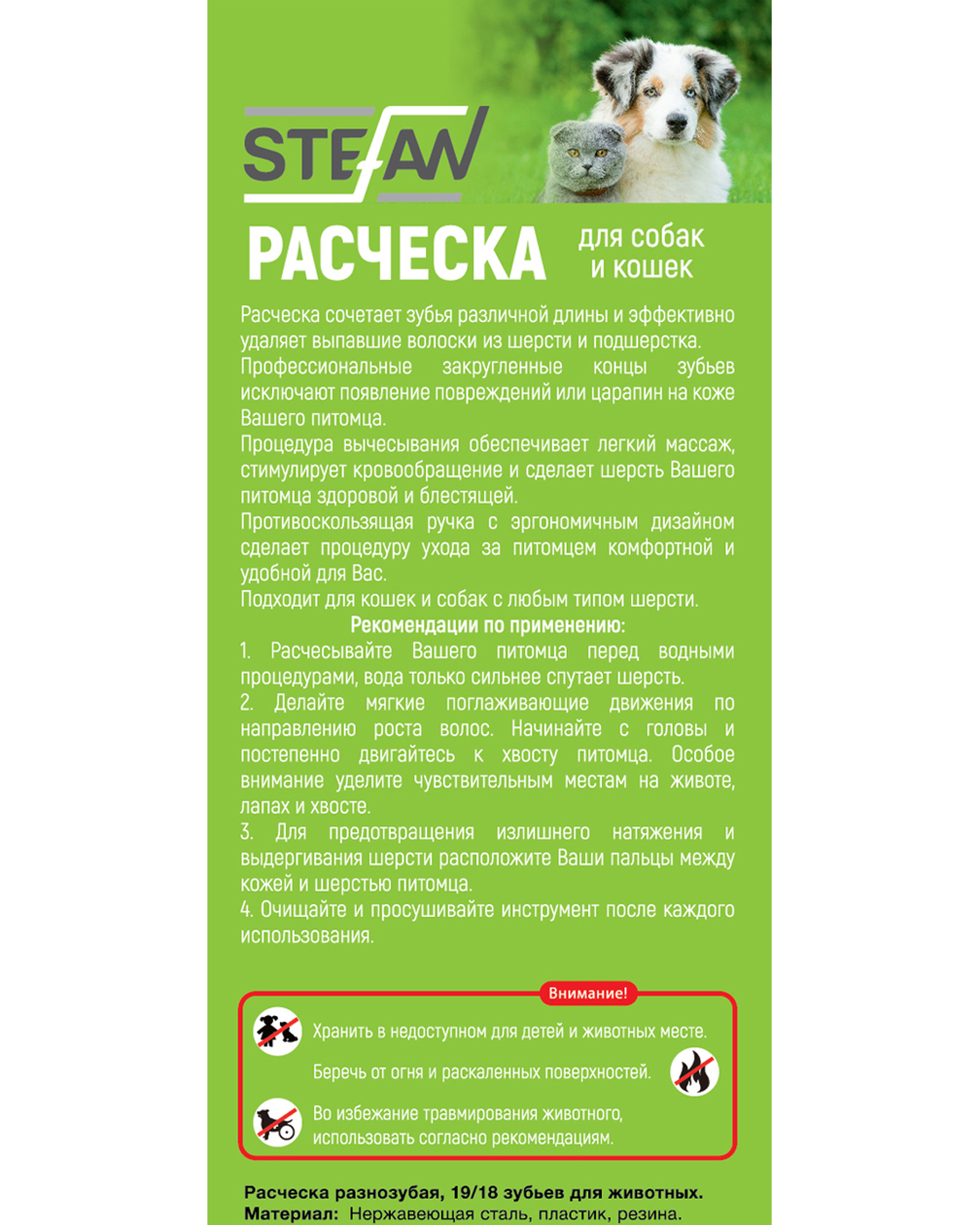 Расческа разнозубая для животных "STEFAN", 19/18 зубьев, GС1918