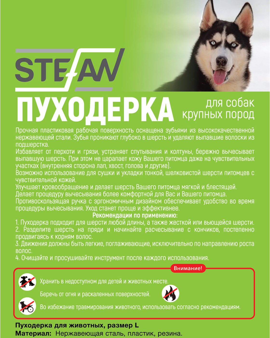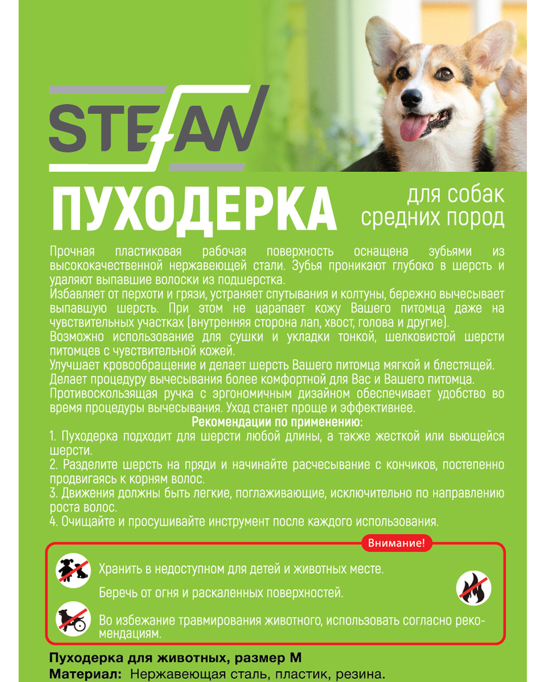 Пуходерка для животных "STEFAN", M, GSN121