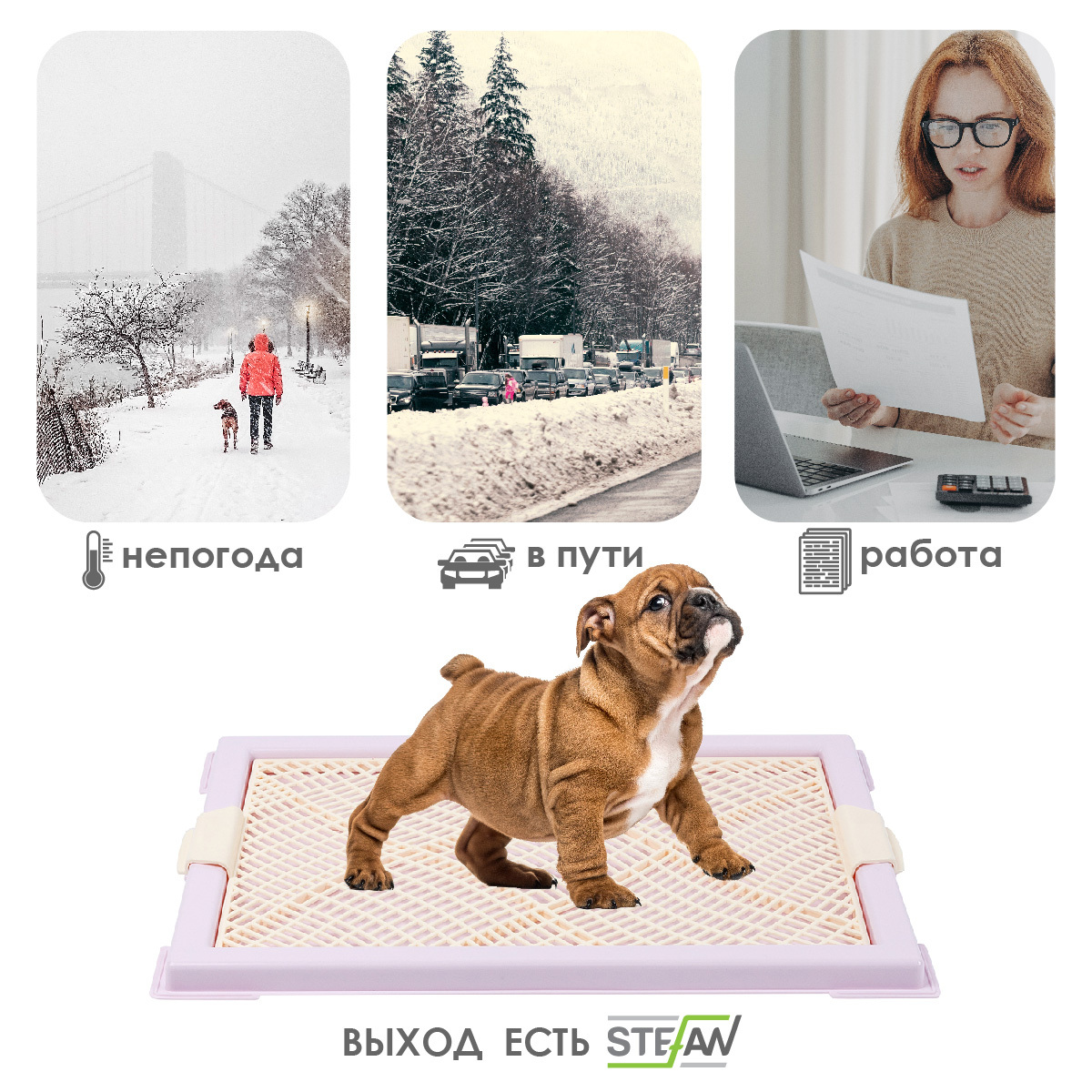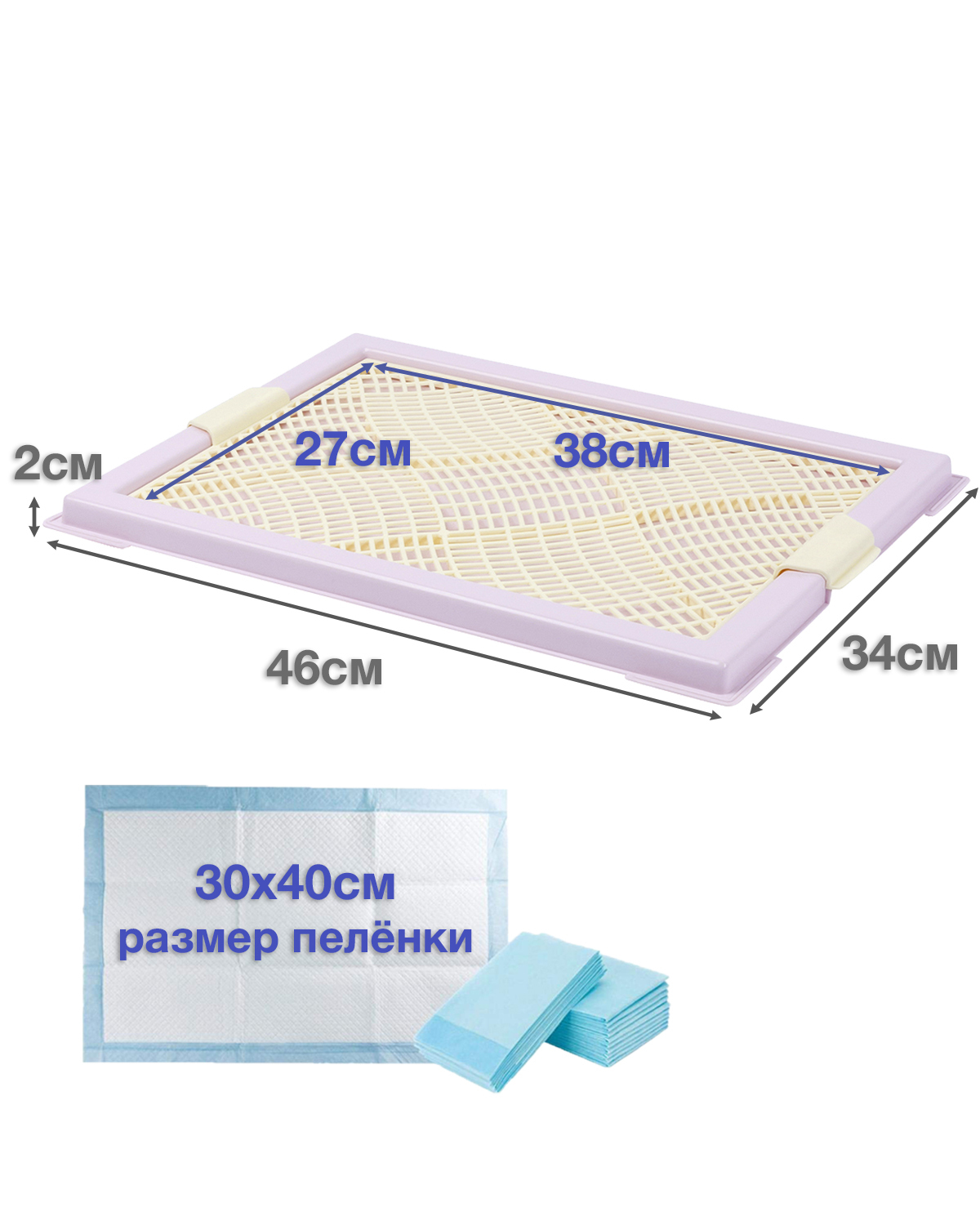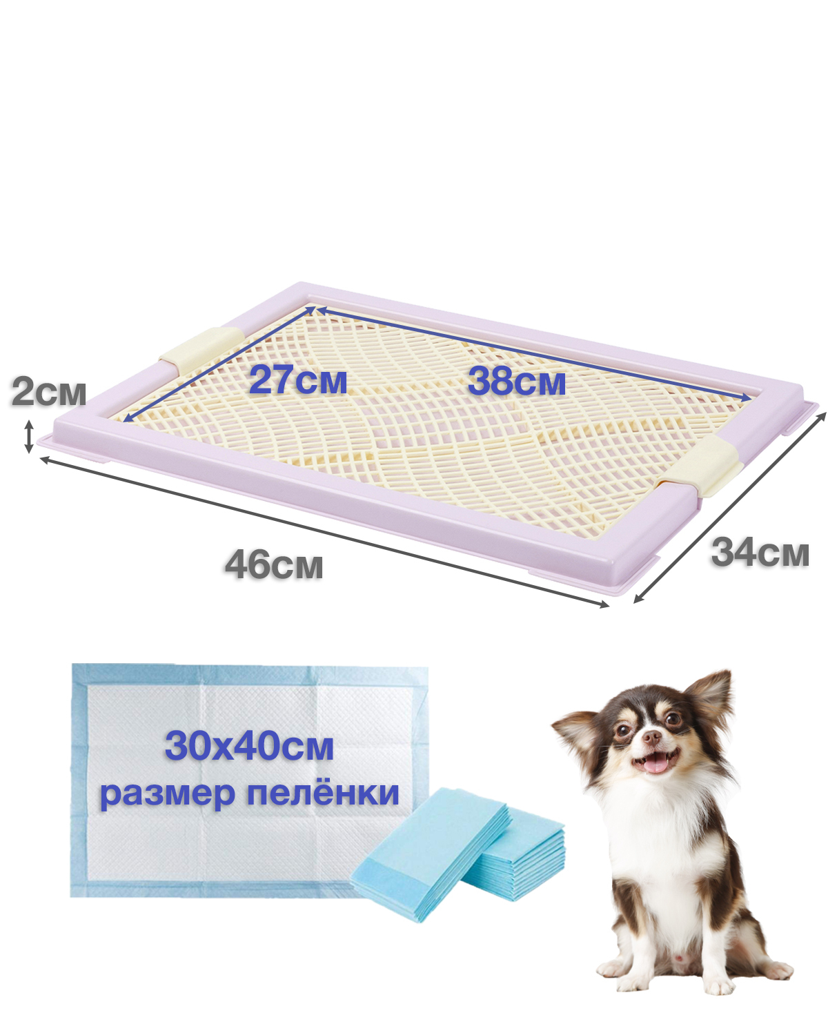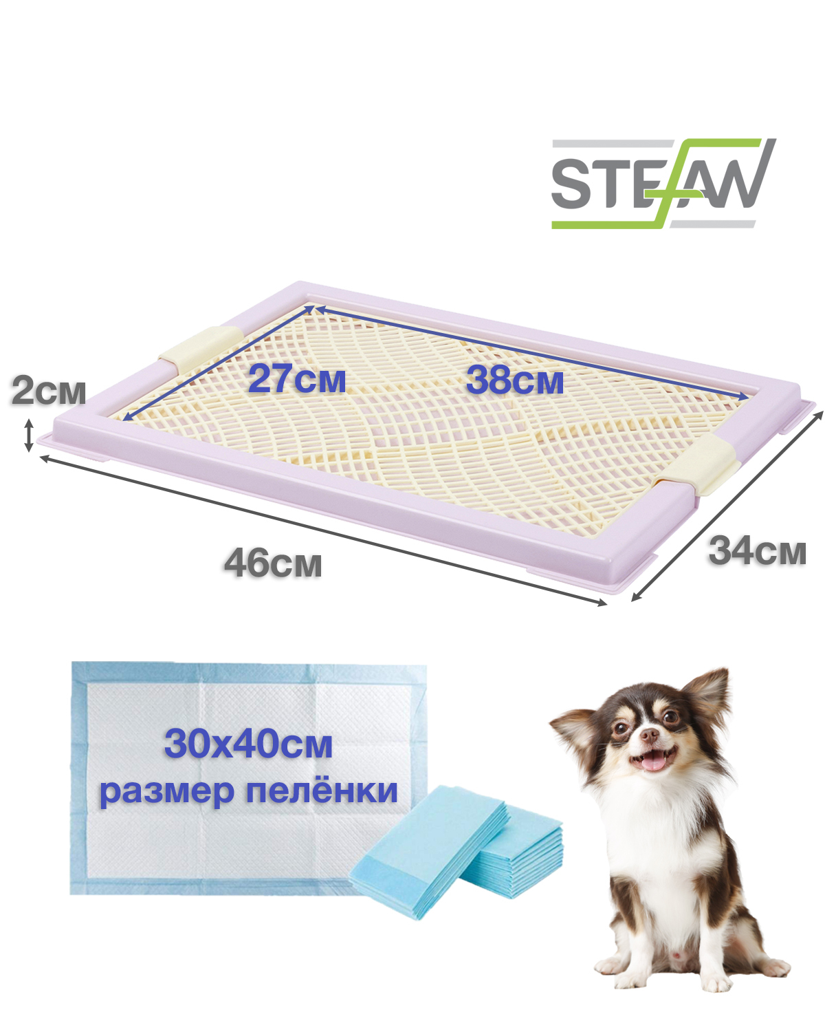 Туалет лоток для собак STEFAN с сеткой, мини (XS), размер 46х34см, цвет лиловый, BP1044