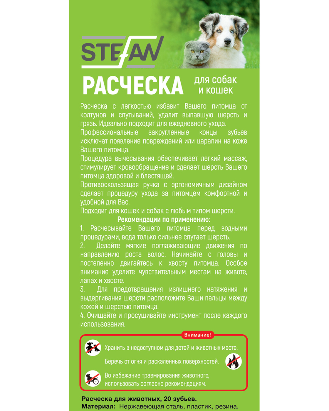 Расческа для животных "STEFAN", 20 зубьев, GС1020