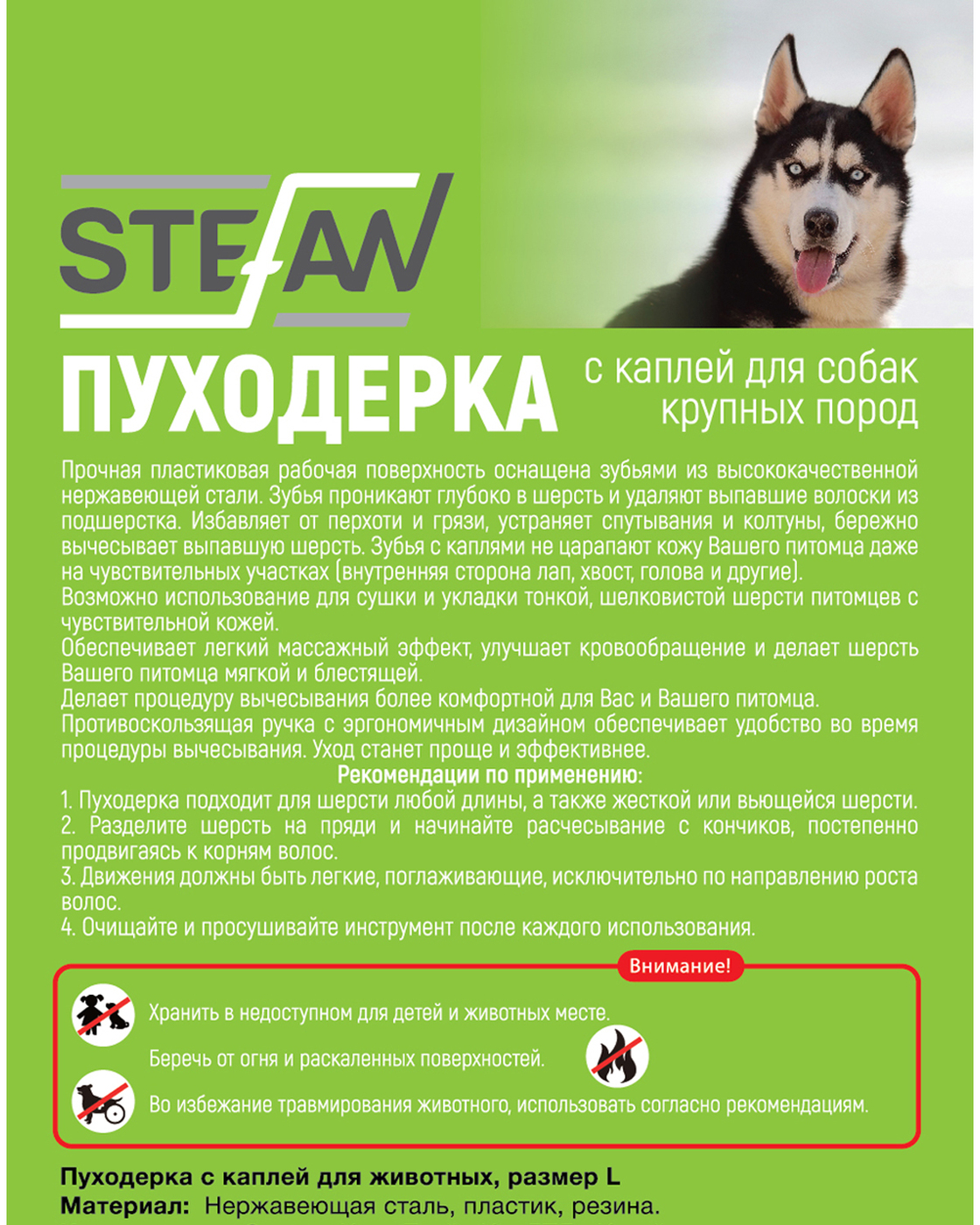 Пуходерка щетка с каплей для животных "STEFAN", L, GSB125
