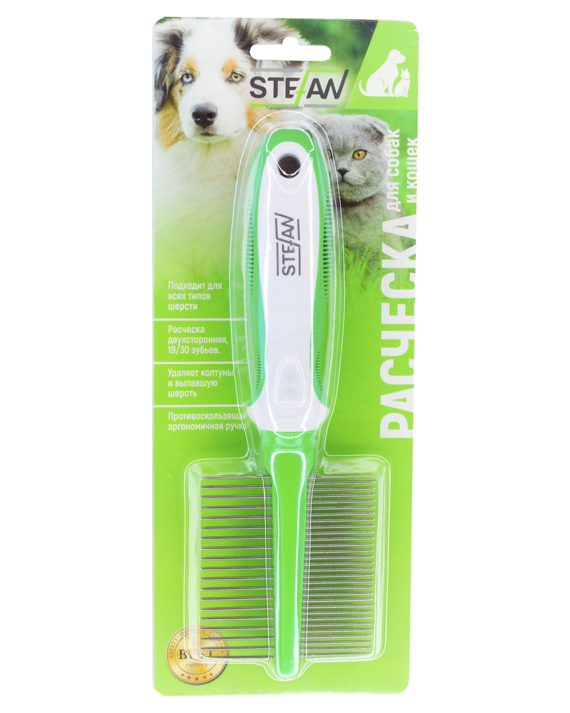 Расческа двухсторонная для животных "STEFAN", 19/30 зубьев, GС1930