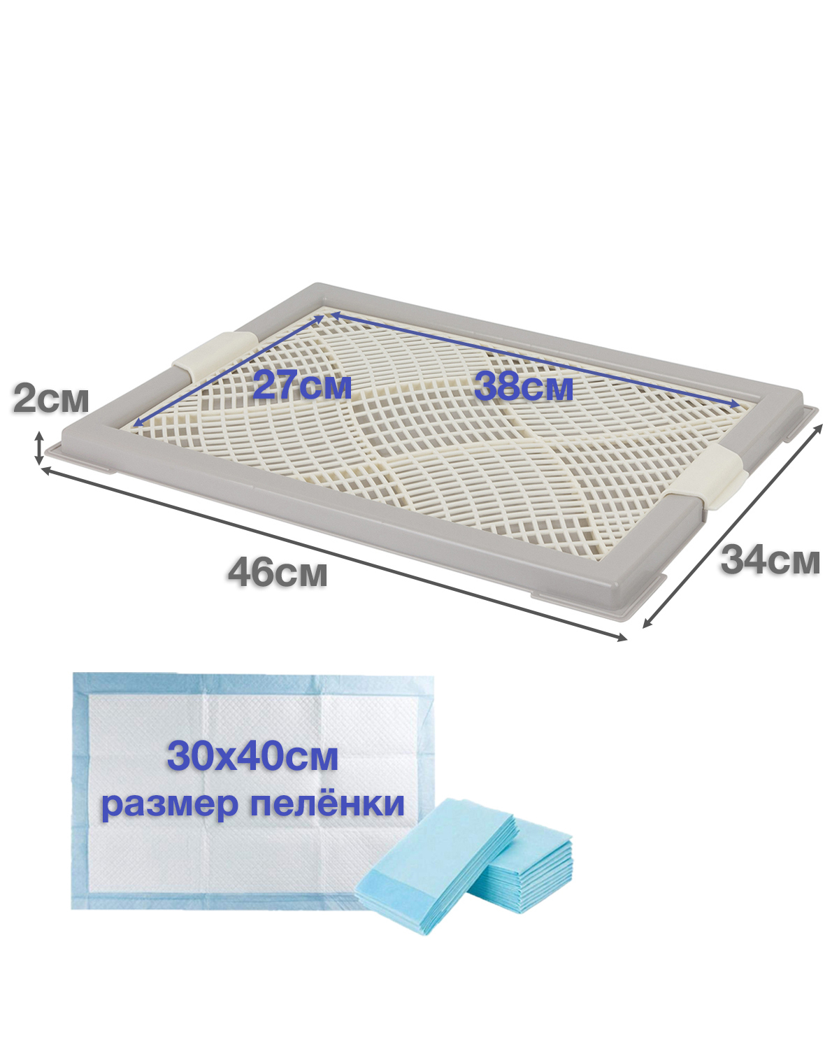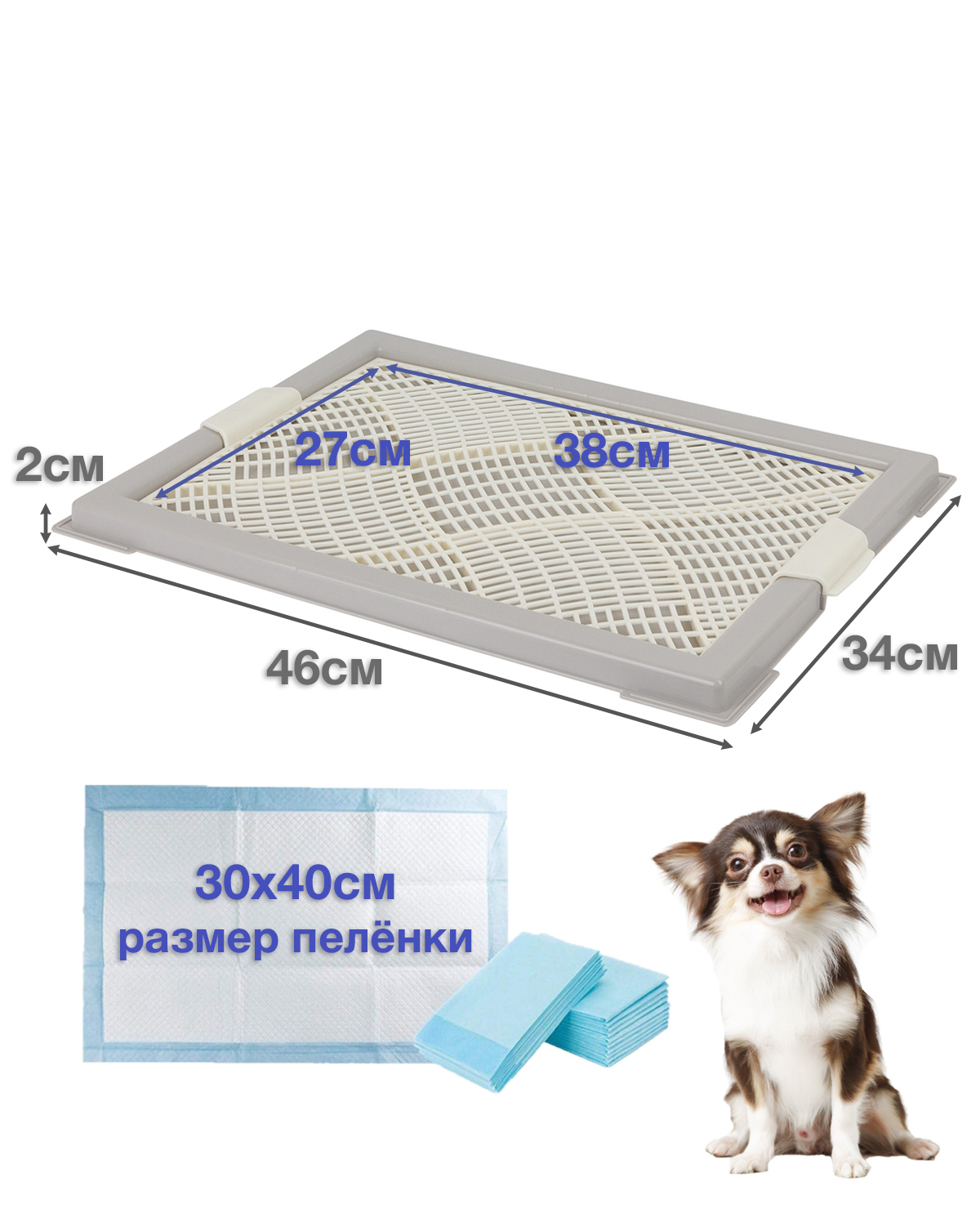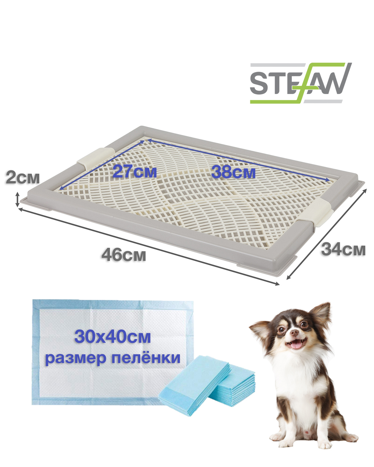 Туалет лоток для собак STEFAN с сеткой, мини (XS), размер 46х34см, цвет серый, BP1041