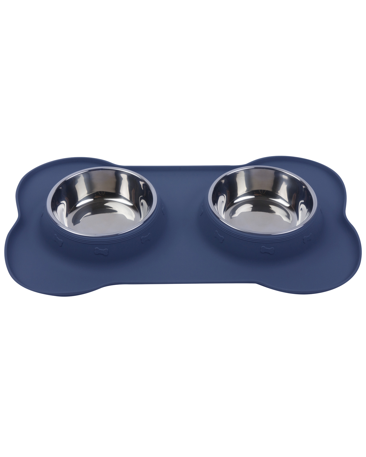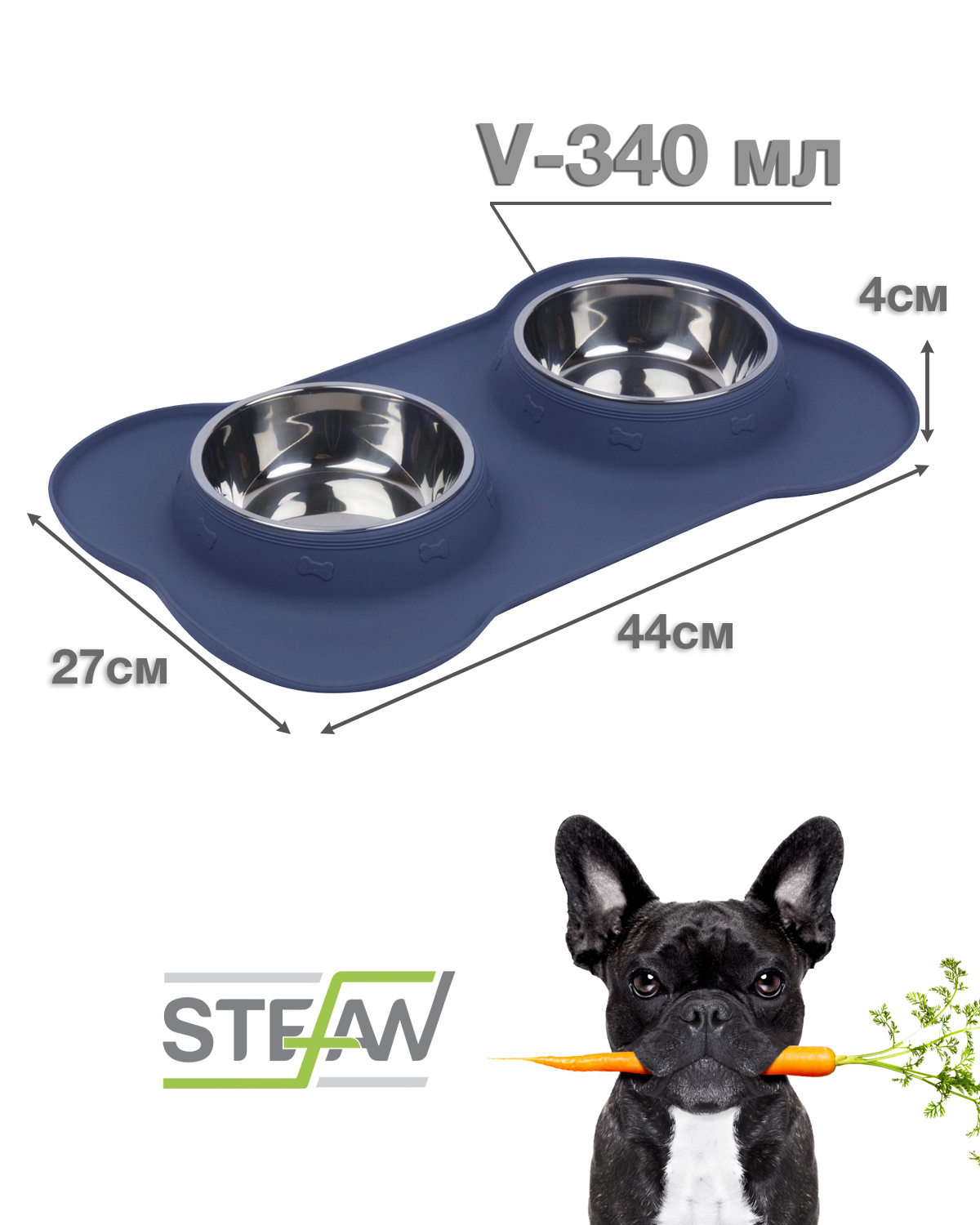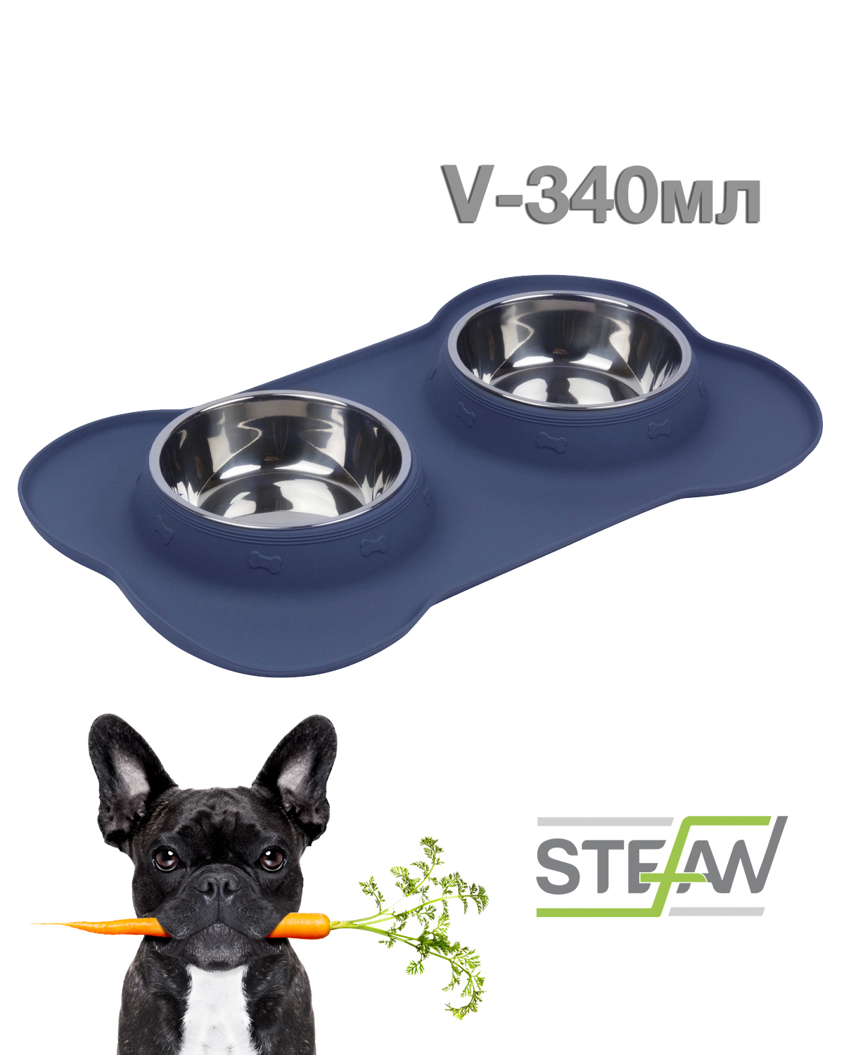 Миска двойная с силиконовым основанием для животных STEFAN, размер M, синий, 2х340мл, WF50208