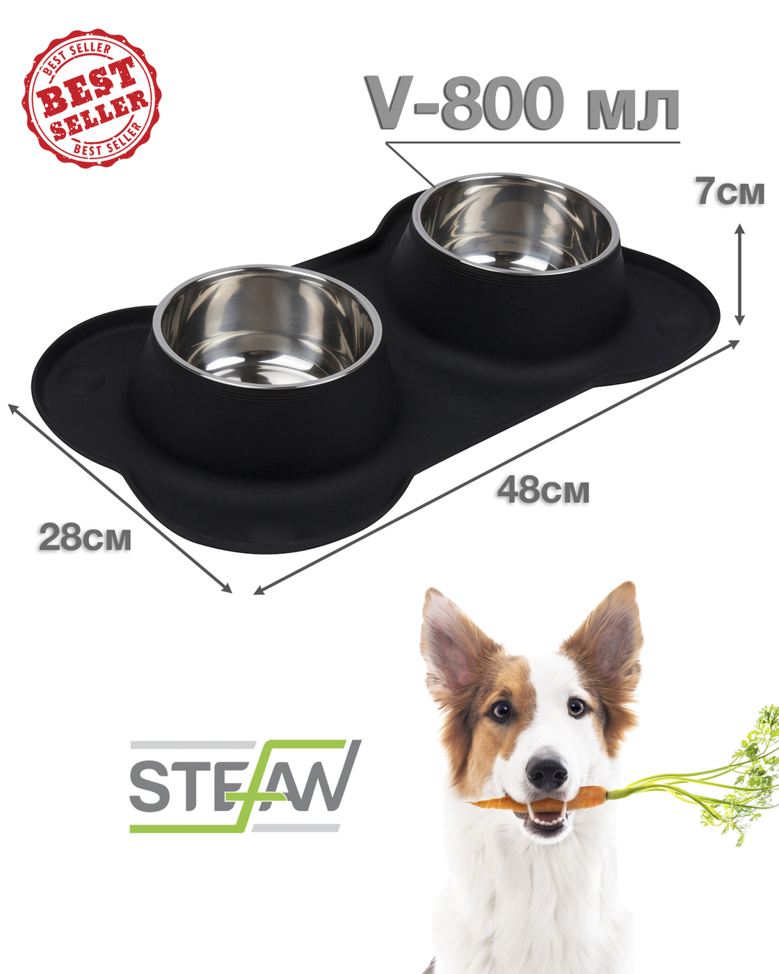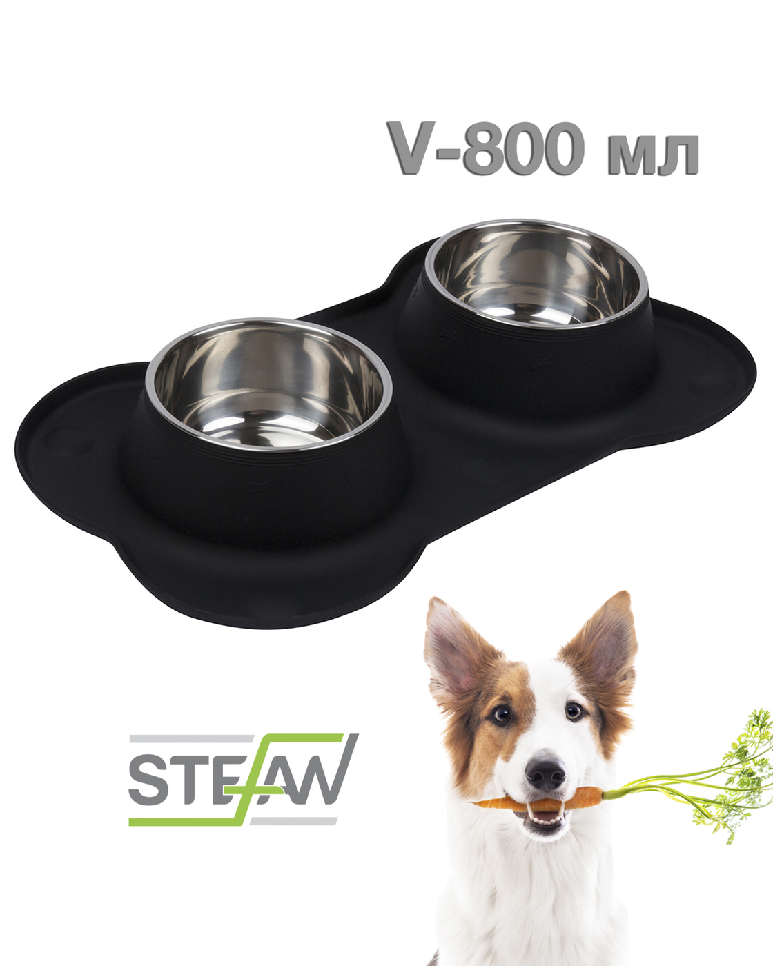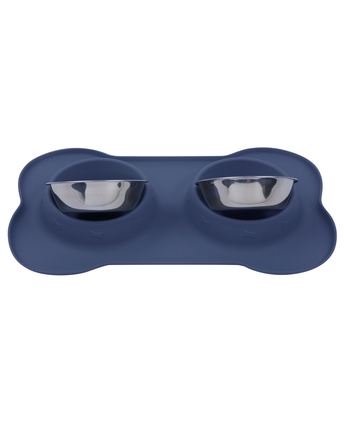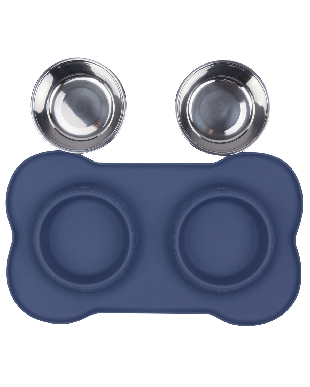Миска двойная с силиконовым основанием для животных STEFAN, размер M, синий, 2х340мл, WF50208
