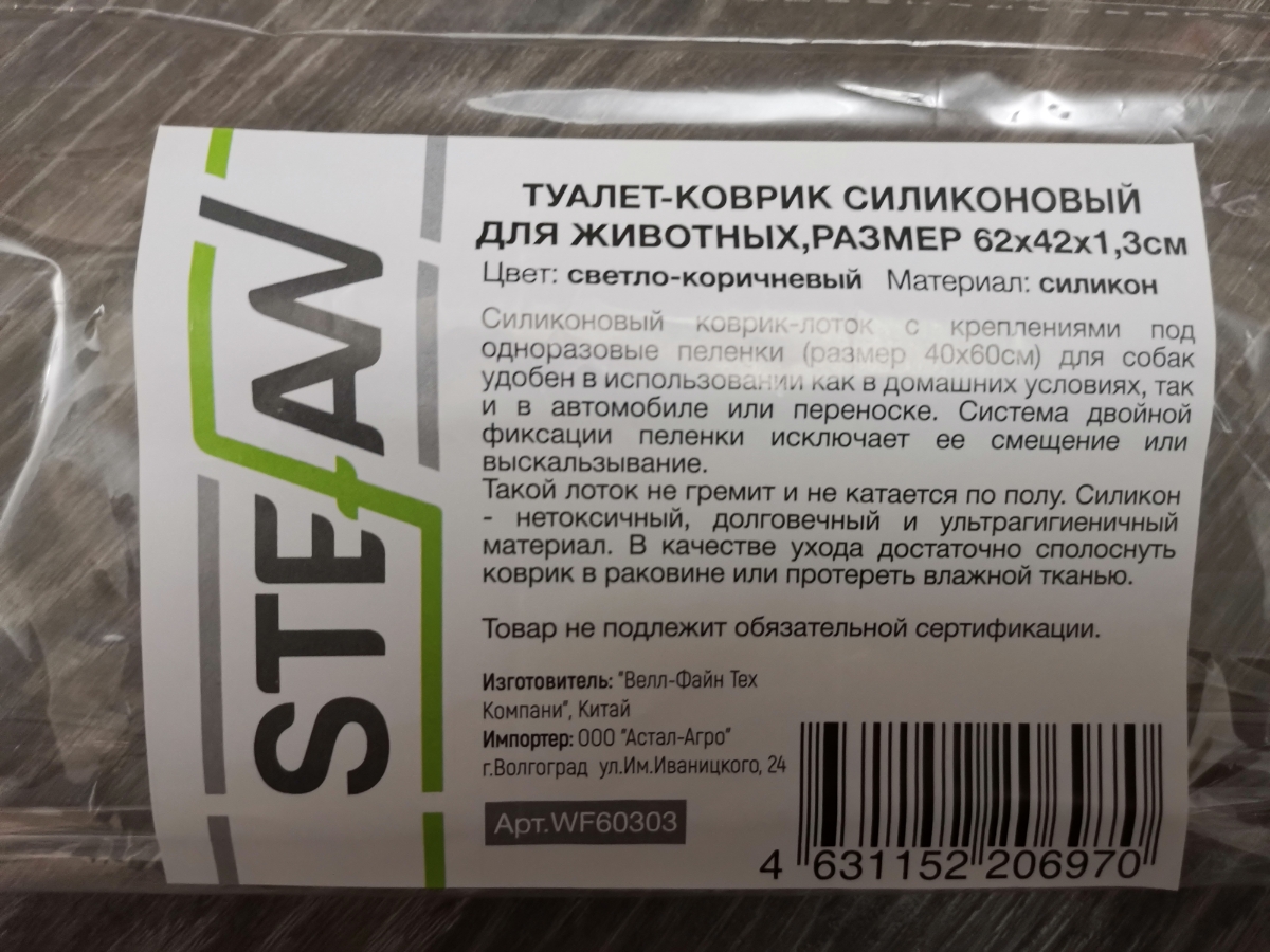 Туалет-коврик силиконовый для животных STEFAN, 62х42, синий, WF60308