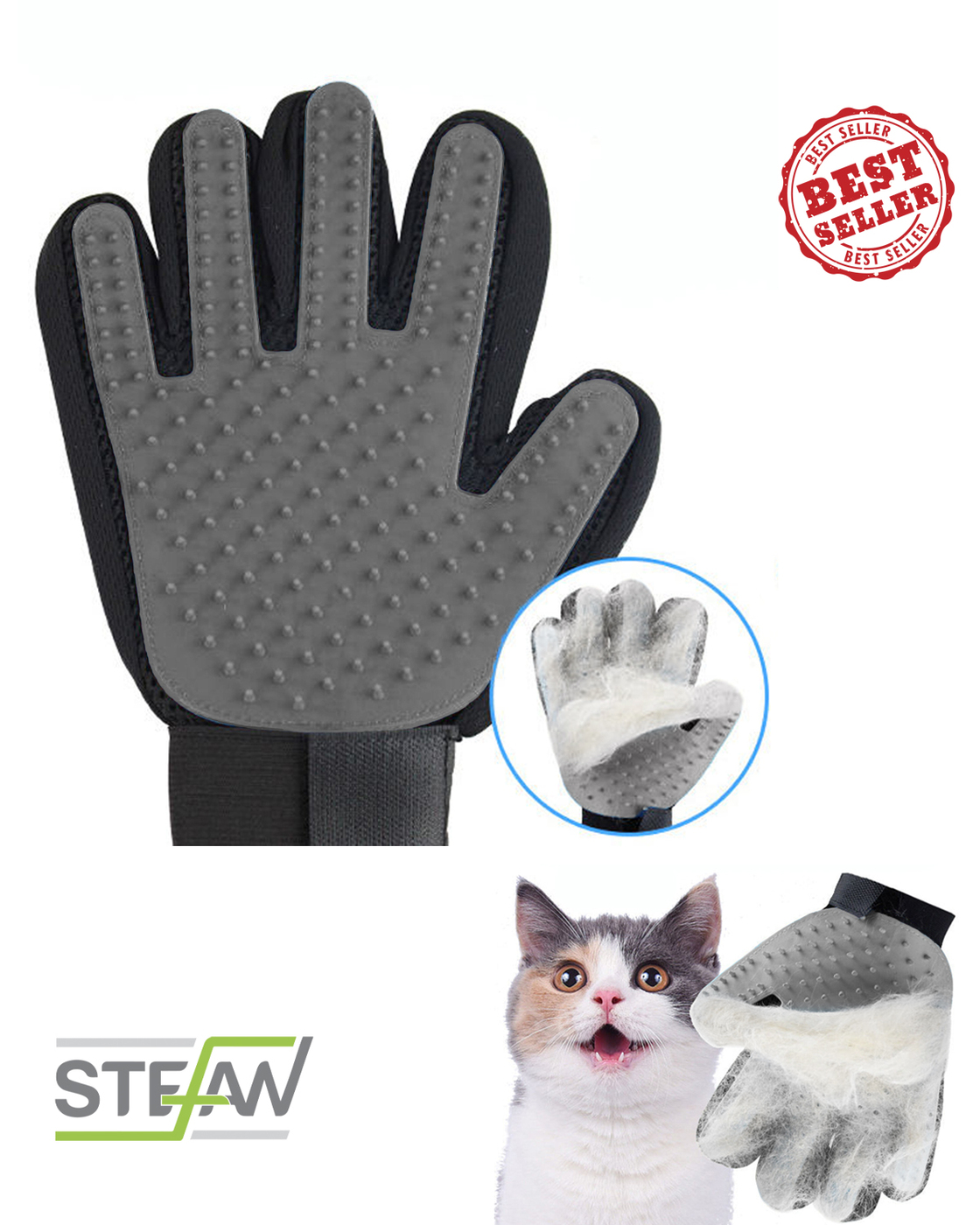 Перчатка/щетка массажная для вычесывания шерсти животных STEFAN, серый, 23х17см, PMG-1201Grey
