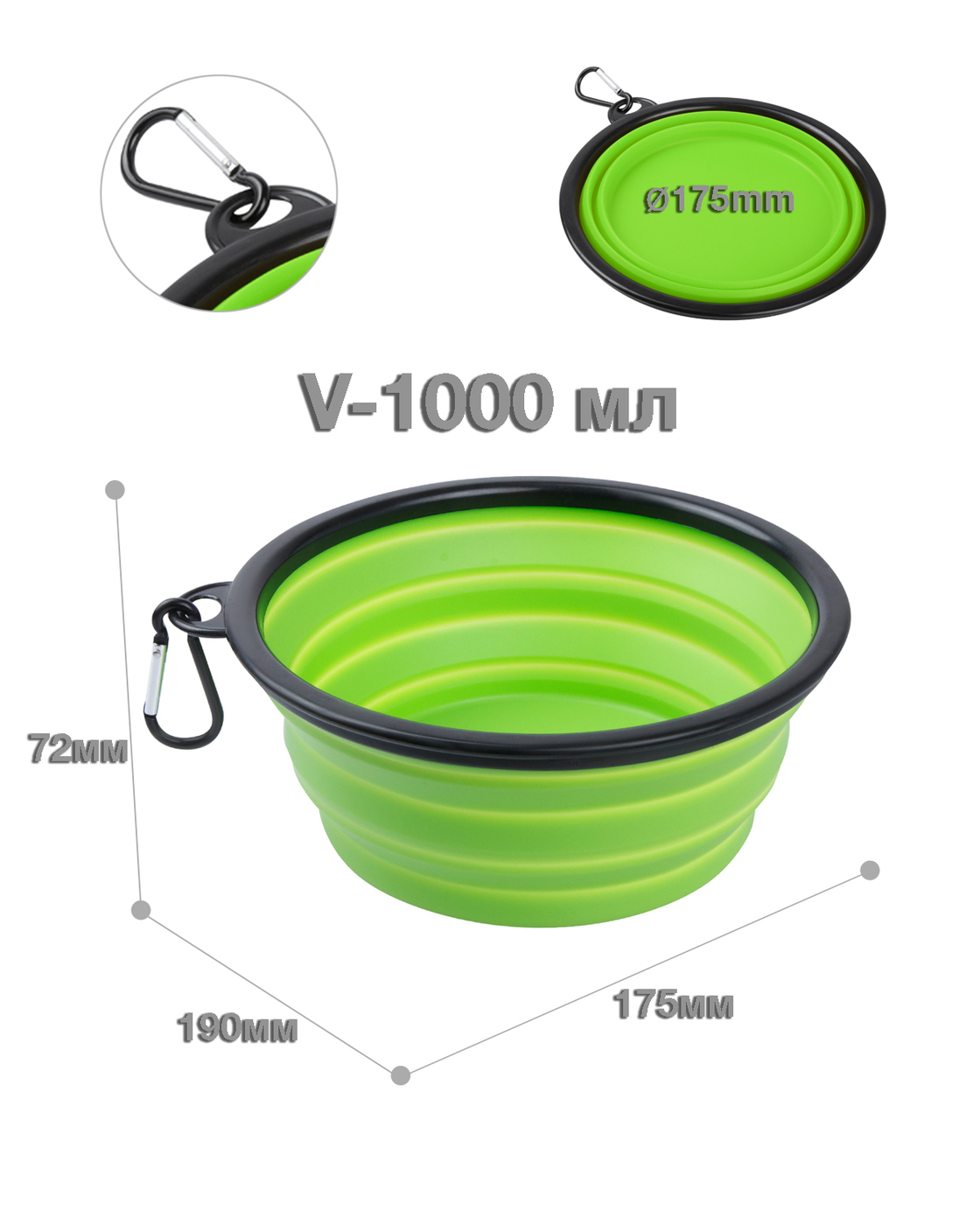 Миска складная силиконовая для животных STEFAN, размер L, салатовая, WF72906