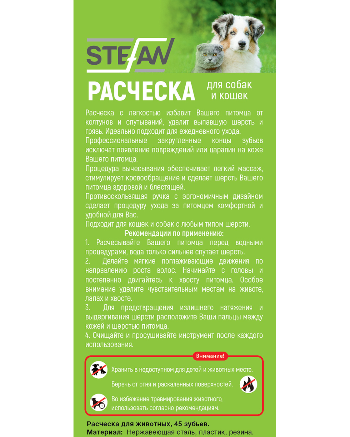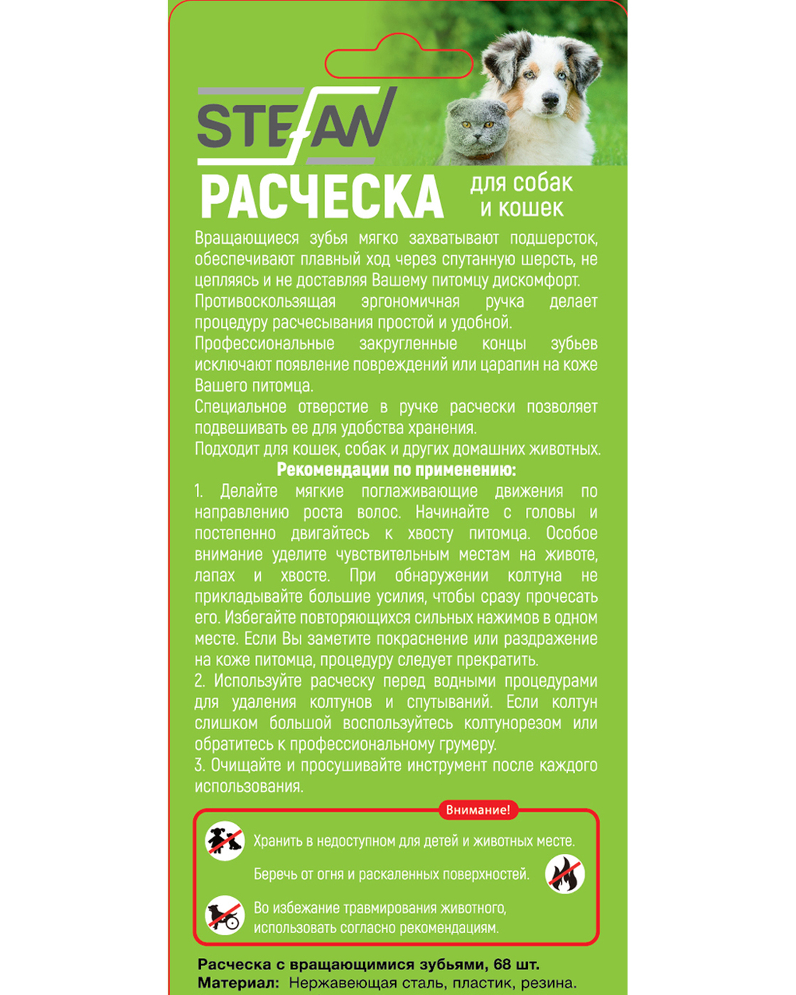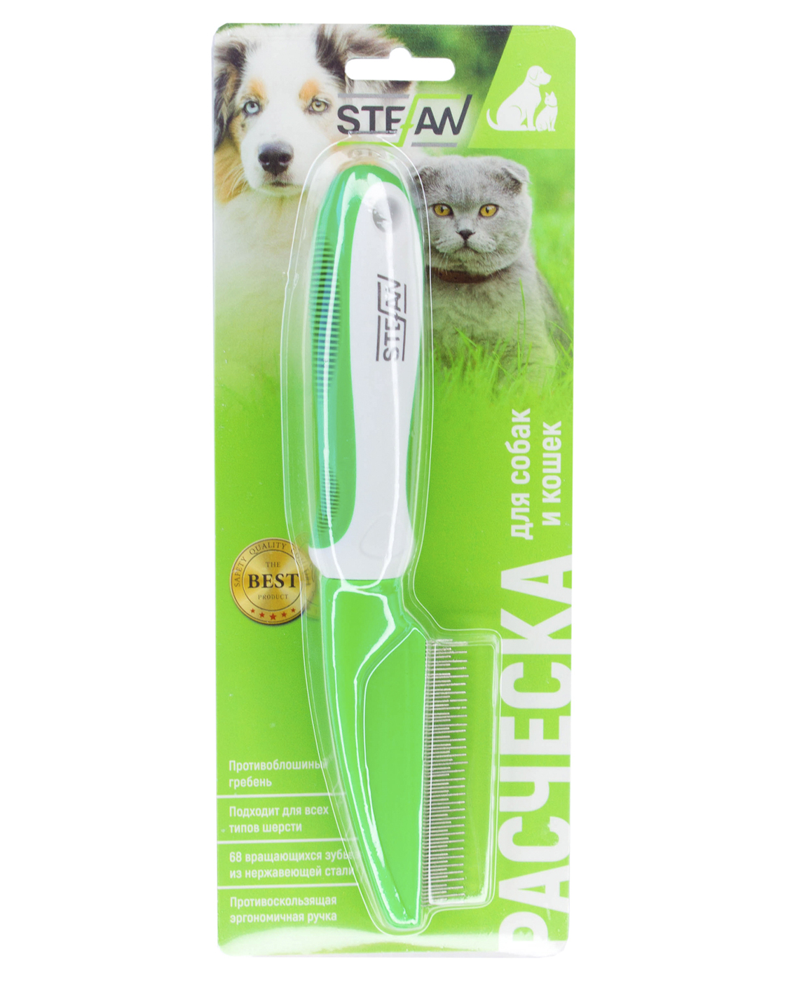 Расческа для животных с вращающимися зубьями "STEFAN", 68 зубьев, GСR068