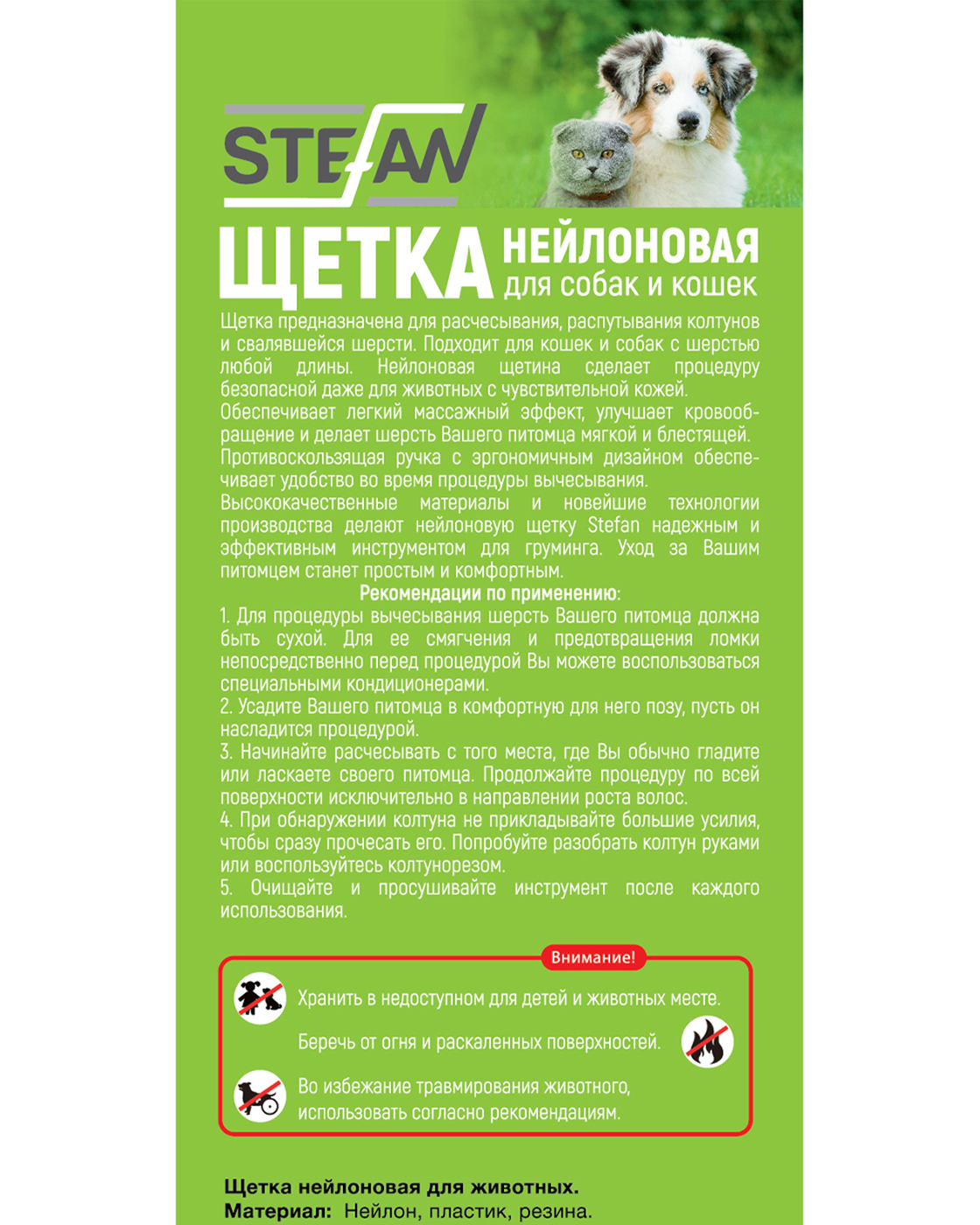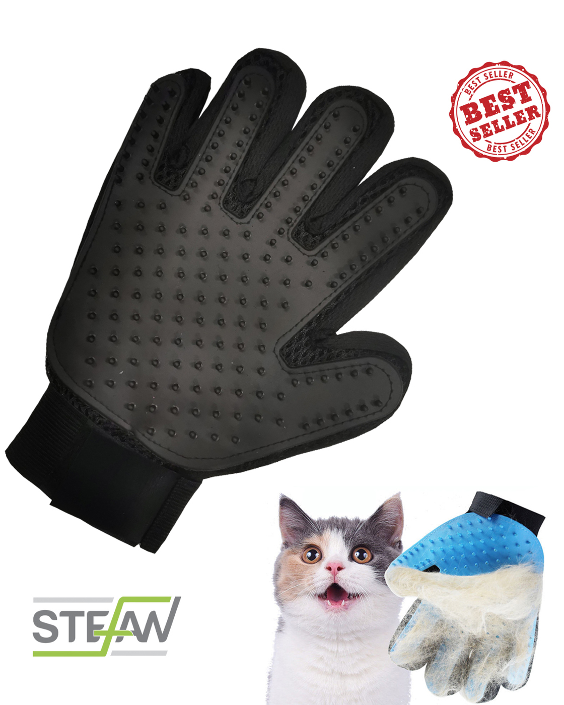 Перчатка/щетка массажная для вычесывания шерсти животных STEFAN, черный, 23х17см, PMG-1201BLCK