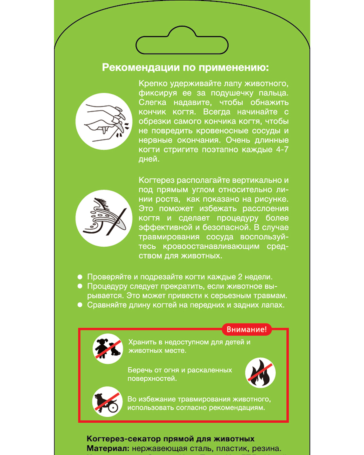 Когтерез-секатор (когтерезка) для стрижки когтей для животных "STEFAN", прямой, малый, GS1016