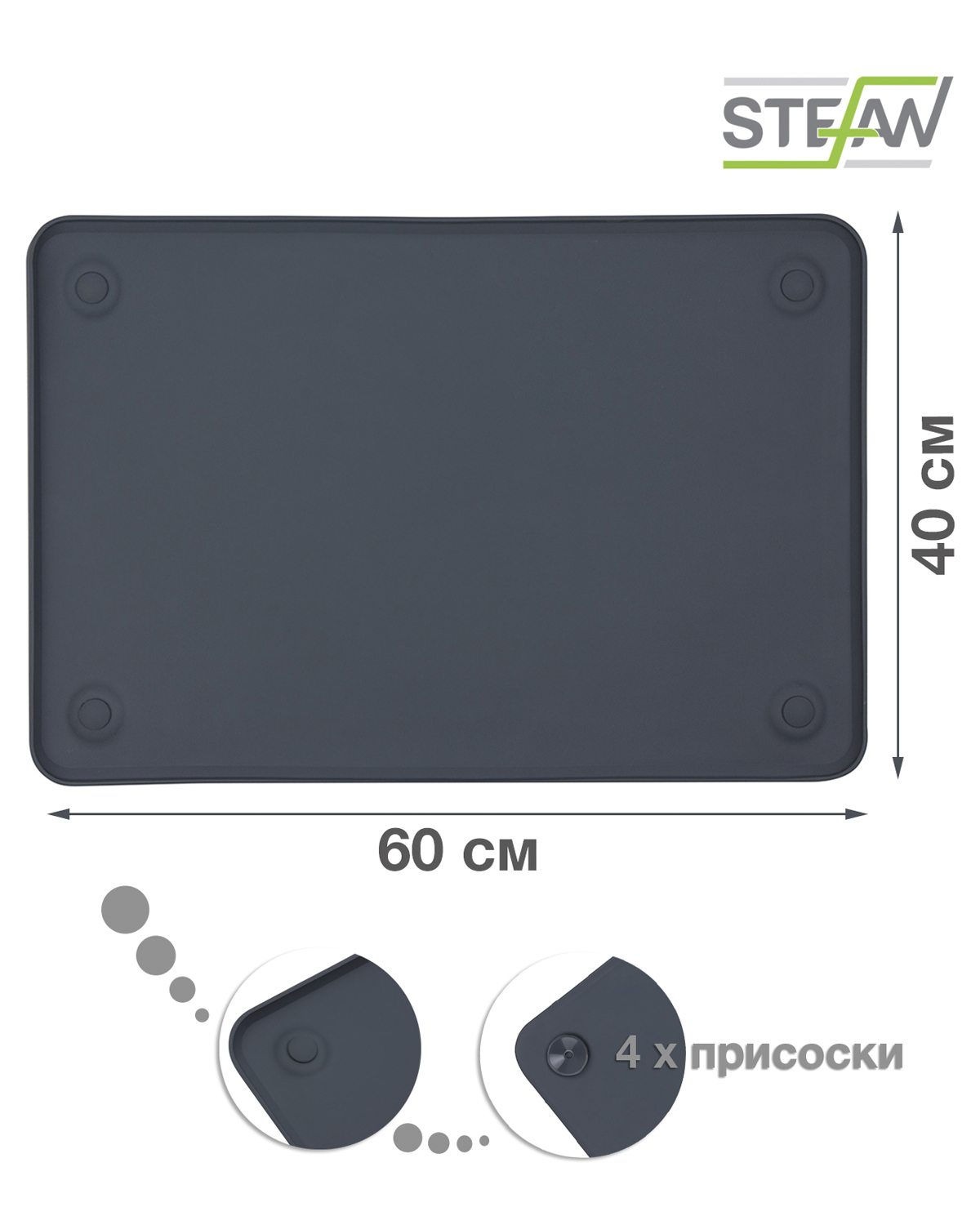 Коврик под миску силиконовый с присосками STEFAN для домашних животных, размер L, серый, WF18201